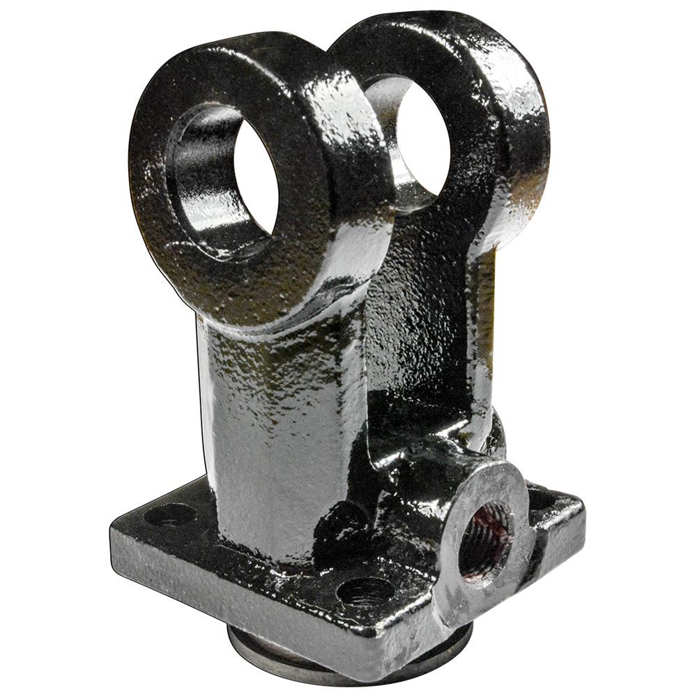 Constructed from ductile cast iron, this base clevis has excellent ductility and a higher impact rate. This Grizzly® part is designed for use with hydraulic cylinders. It fits rods measuring 2 inches and features a pin hole size of 1 inch.