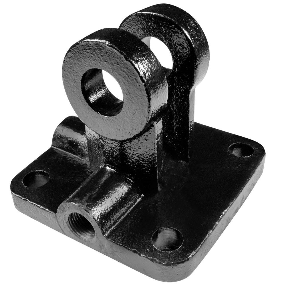 Constructed from ductile cast iron, this base clevis has excellent ductility and a higher impact rate. This Grizzly® part is designed for use with hydraulic cylinders. It fits rods measuring 4 inches and features a pin hole size of 1 inch.