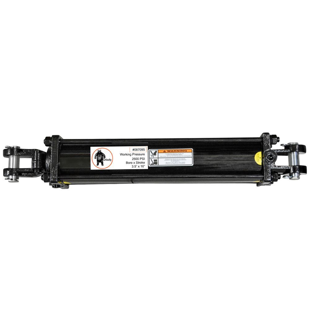 Grizzly® hydraulic cylinders are constructed of high strength steel and include tie rods to prevent high pressure failure. This cylinder features a 3-1/2" inch bore with a 16" inch stroke and has a 1" inch pin.