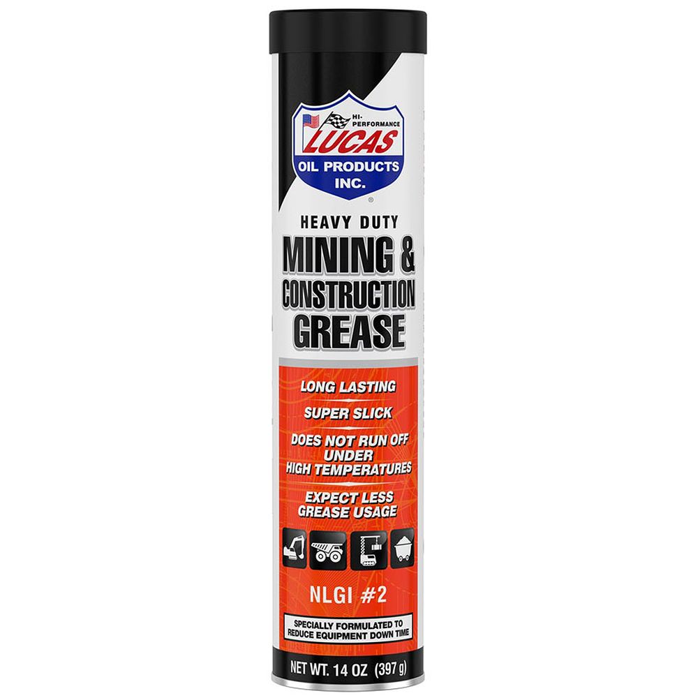 Lucas Heavy Duty Mining and Construction Grease is a smooth, dark gray, lithium complex grease fortified with 5% molybdenum disulfide to provide excellent shock loading protection in the most adverse operating conditions.