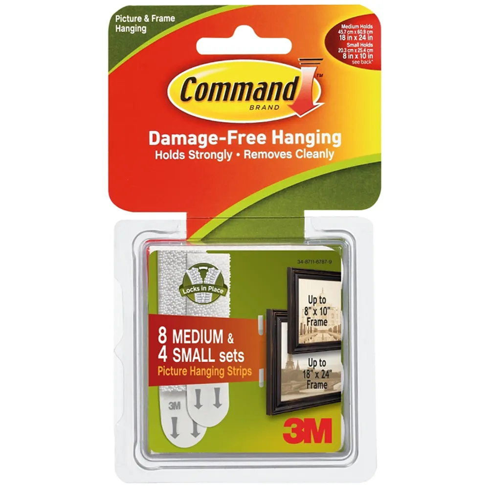 • Package includes 4 pairs of small and 8 pairs of medium Command Hanging Strips.