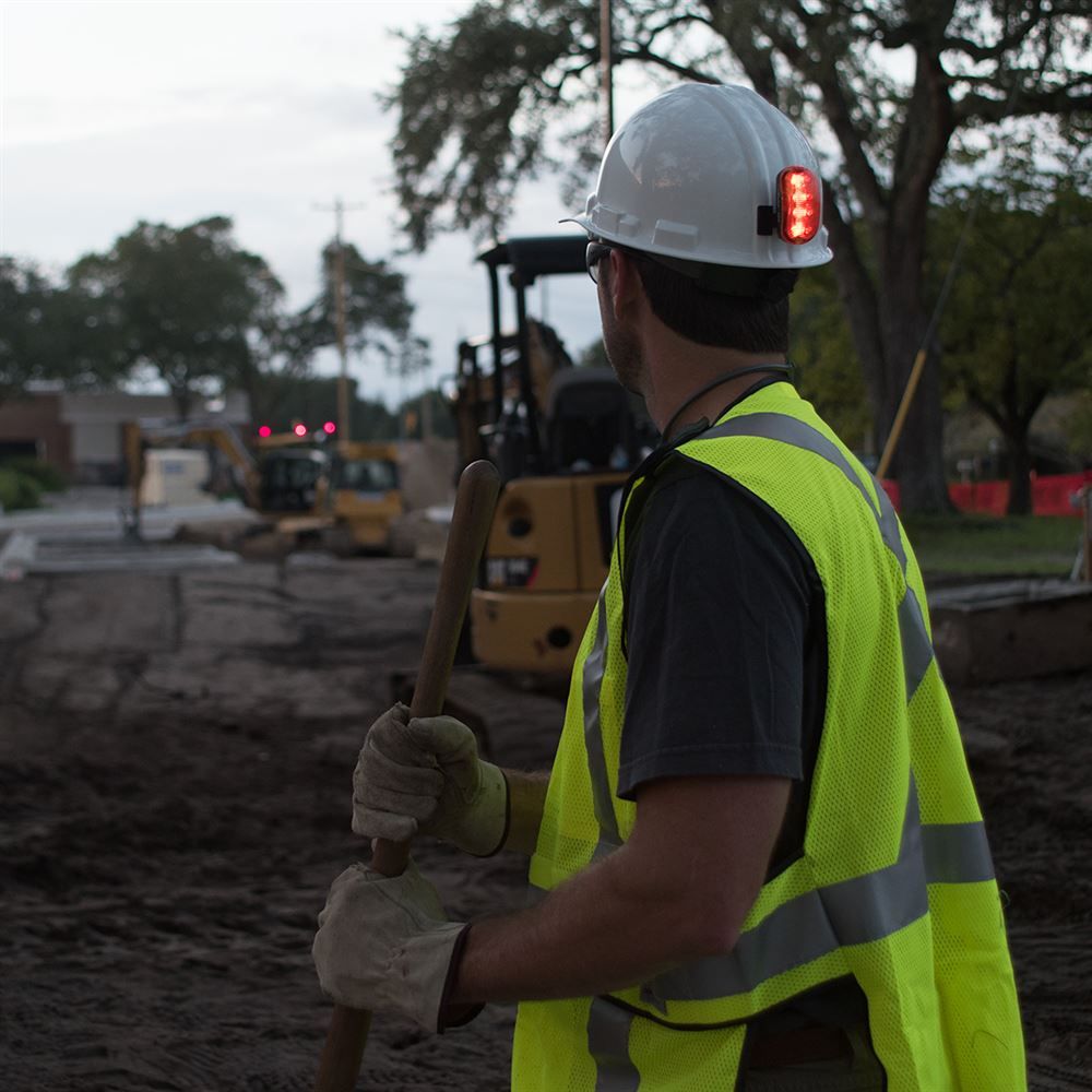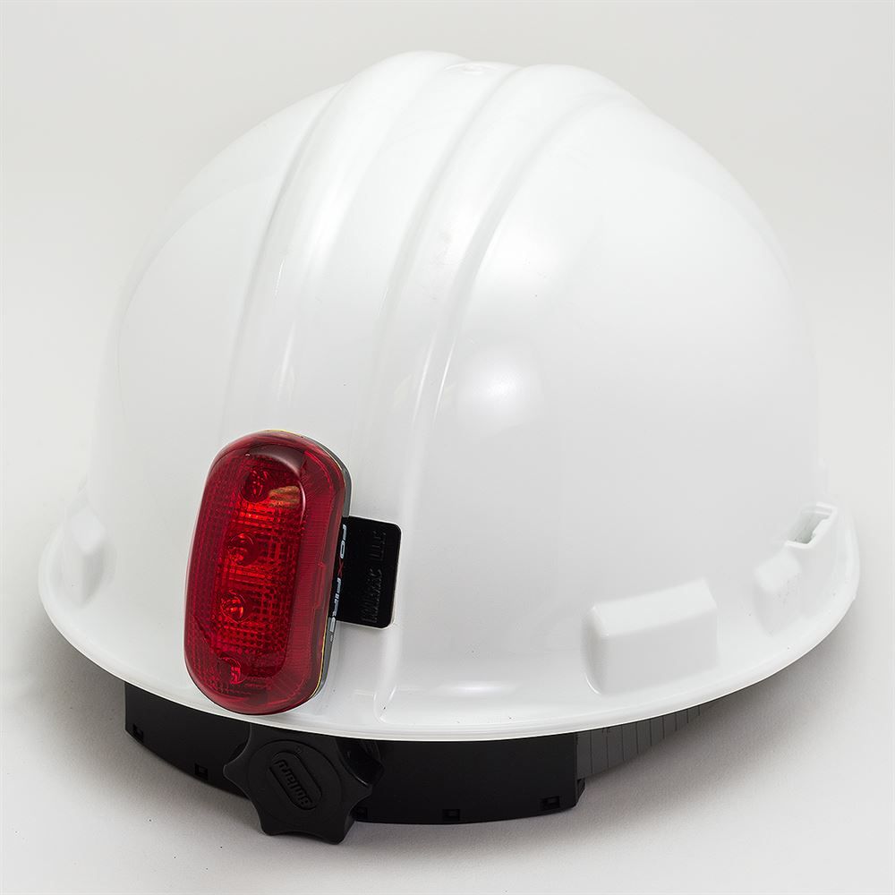 This lightweight design features (4) super bright LED's that can be seen for over 1/2 mile. With 3 lite patterns: Steady on / Flash / Strobe and extremely weather-resistant. Featuring a custom mounting bracket that affixes firmly to any flat surface with a high bond adhesive. No tools needed and Hard Hat Lite requires (2) AAA alkaline batteries (included).