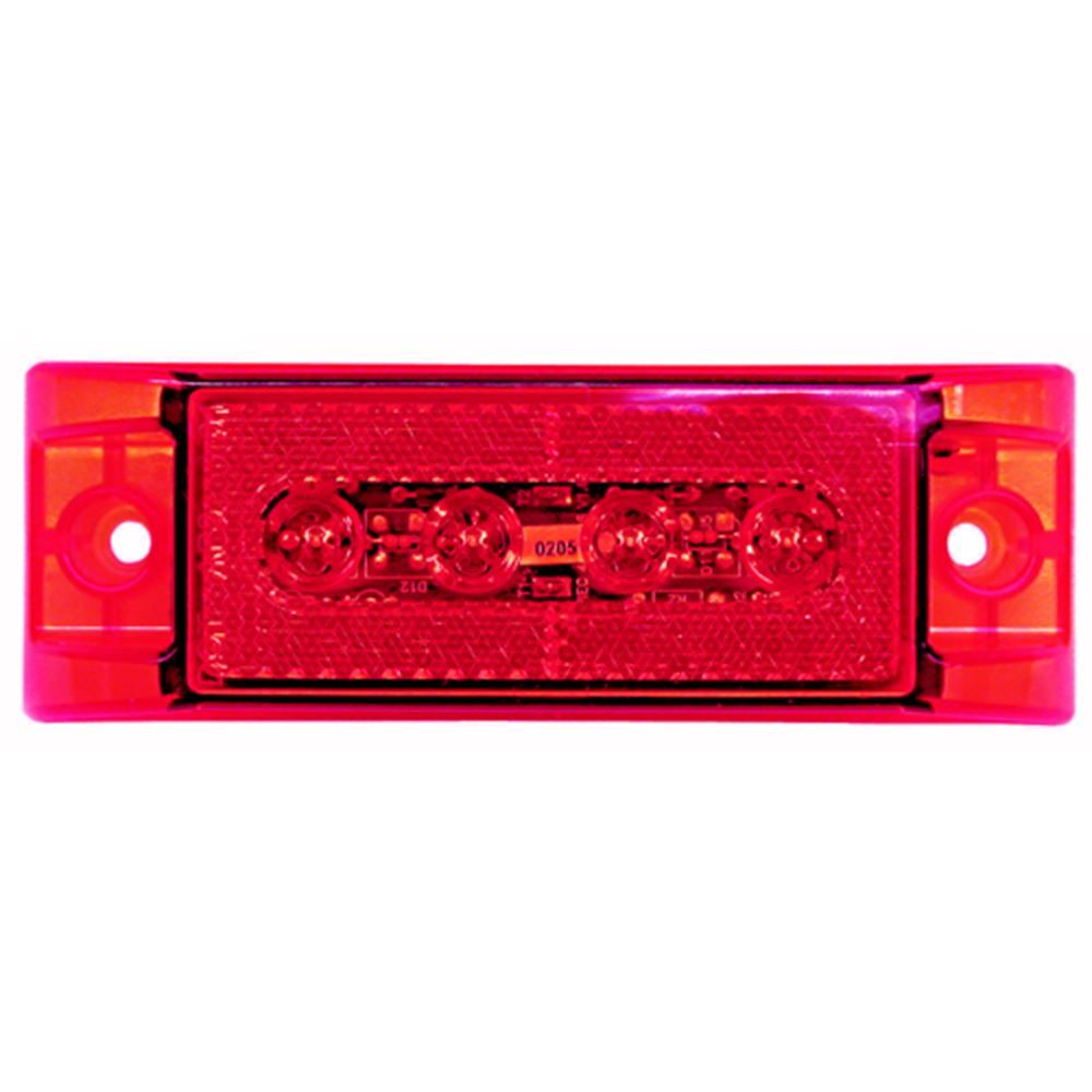 This clearance/side marker light operates from 9-16 volts and offers identification with 4-diode LED lights. Lens is made from acrylic and measures 6 in. long x 1-3/8 inch deep x 2 inches wide.