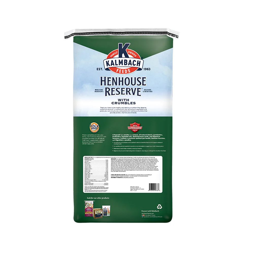 Kalmbach® Henhouse Reserve With Crumbles provides high protein in a form perfect for picky eaters and adult hens with small beaks.