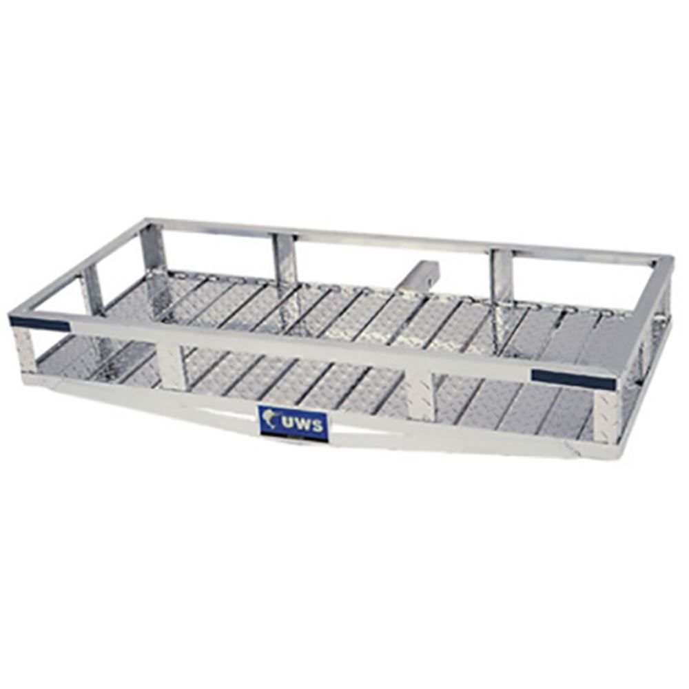 This hitch cargo carrier, made by UWS, can handle the weight to travel and transport your luggage, toolboxes, or bicycles safely. It is constructed of rust-free aluminum and is an all-welded structure. The cargo carrier can be easily installed into any 2 in. receiver and secured with a receiver pin. Due to the above average size of this carrier, it is a great alternative or addition to an overhead container for long road trips. It comes fully welded with a beam platform floor, side rails, and can hold up to 500 pounds.