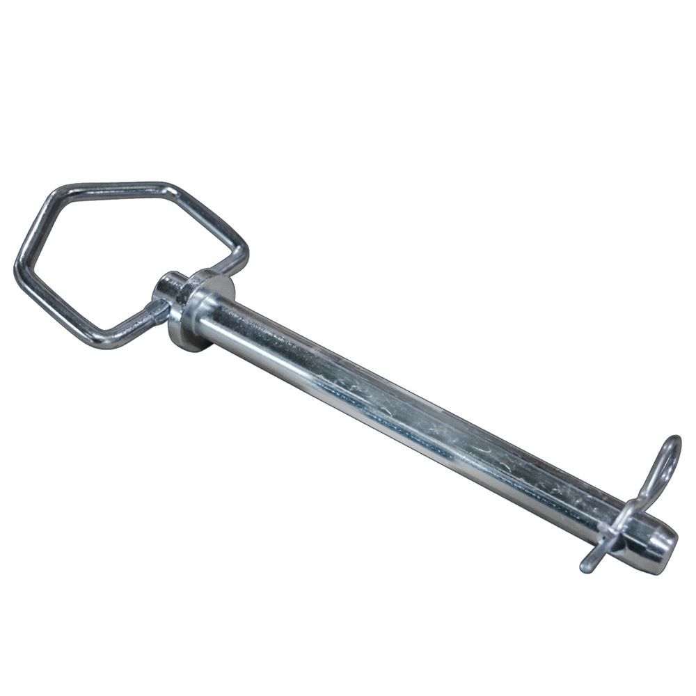 This hitch pin can be used with trucks and trailers, and is designed for tractors and three-point implements. Used to secure the shafts and axles of towing appliances, this hitch pin has a 5/8 inch diameter with a 6 in. usable length.