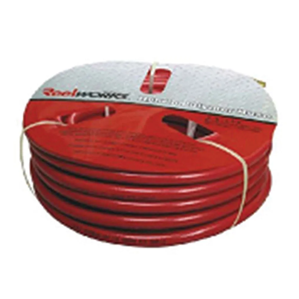 Constructed from an engineered hybrid polymer, this air hose is made from a combination of PVC and rubber for excellent flexibility. The air hose is resistant to oil, heat, ozone and abrasion wear and tear. With a 1/4 in. diameter, the air hose is 25 ft. long. The working pressure is 300 psi and the bursting pressure is 1200 psi.