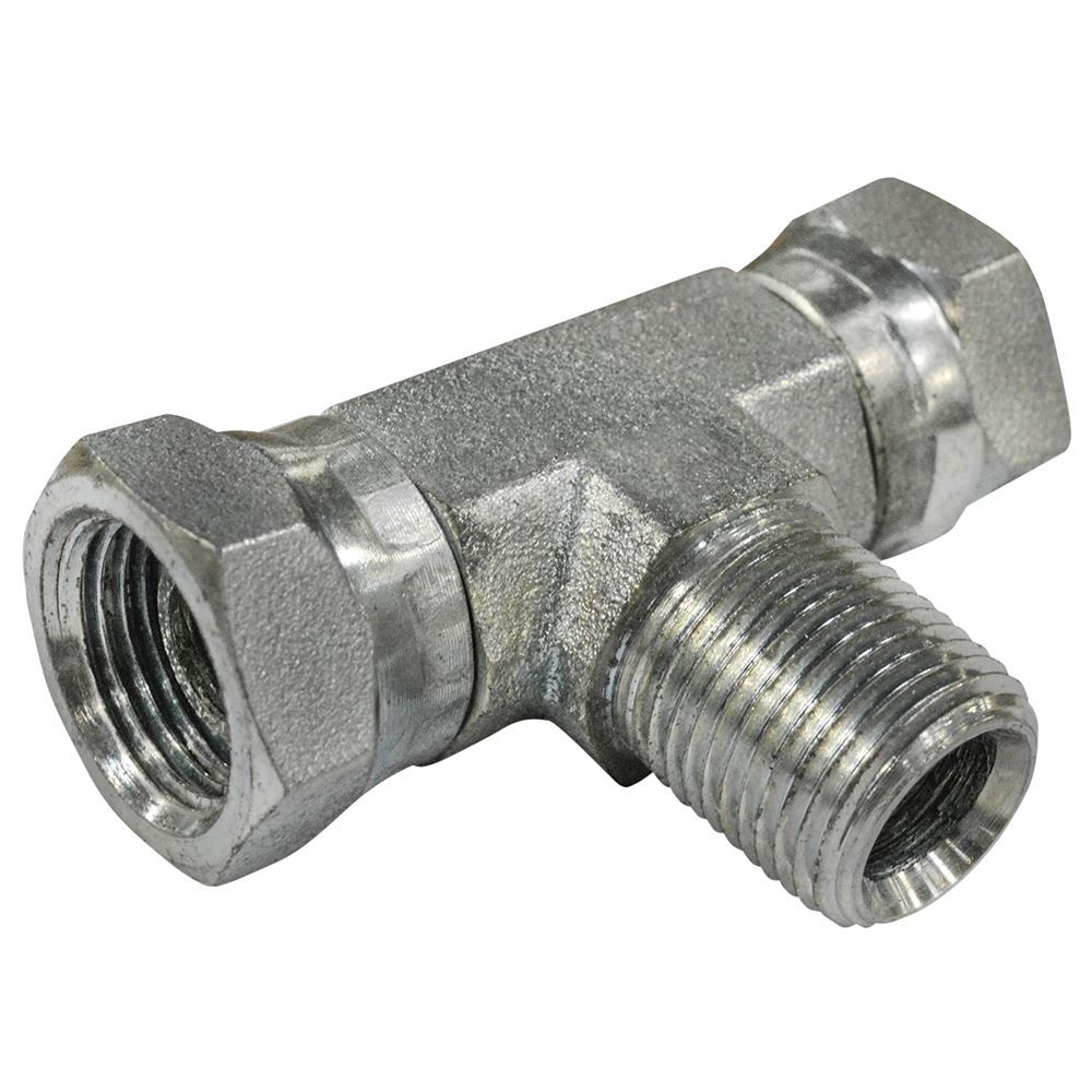 Hydraulic Adapter Tee Fitting 3/8 Inch Female x 3/8 Inch Male