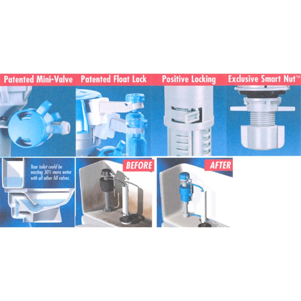 - In-tank height adjustment of the valve from 9 1/4" with a simple 1/4 turn