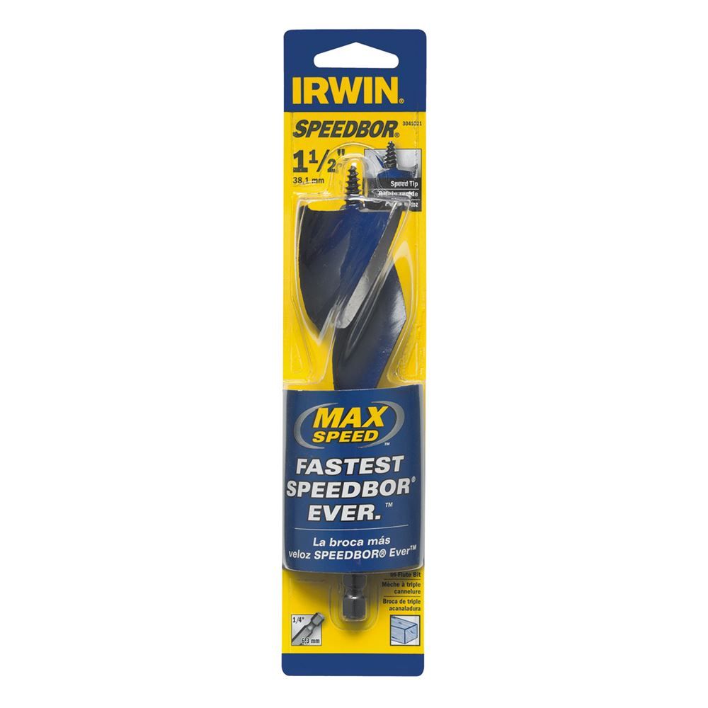 This 1 1/2" x 6" Irwin® Speedbor® MAX Speed Wood has three cutting spurs for faster and cleaner holes and less breakout. It has a 1/4" quick-change shank and is compatible with all 1/4" quick-change chucks, including impact drills.