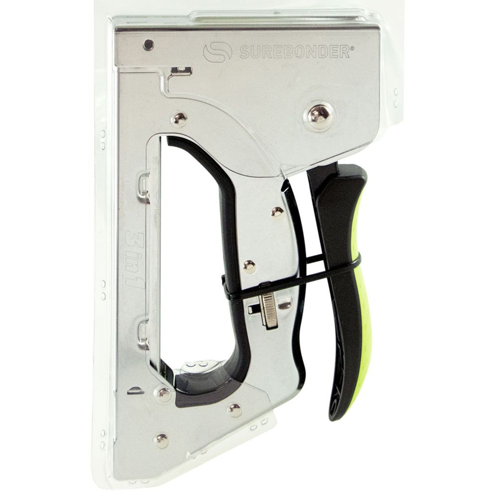 3 in 1 Heavy Duty Stapler: This is a heavy duty steel 3 in 1 staple gun. This stapler can set staples, pins, and brad nails. It has an easy drop in staple loading. The viewing window lets you know if you need to load staples. It will use Surebonder #4 or Arrows T50 heavy duty staples, #8 brad nails and #9 pin nails.
