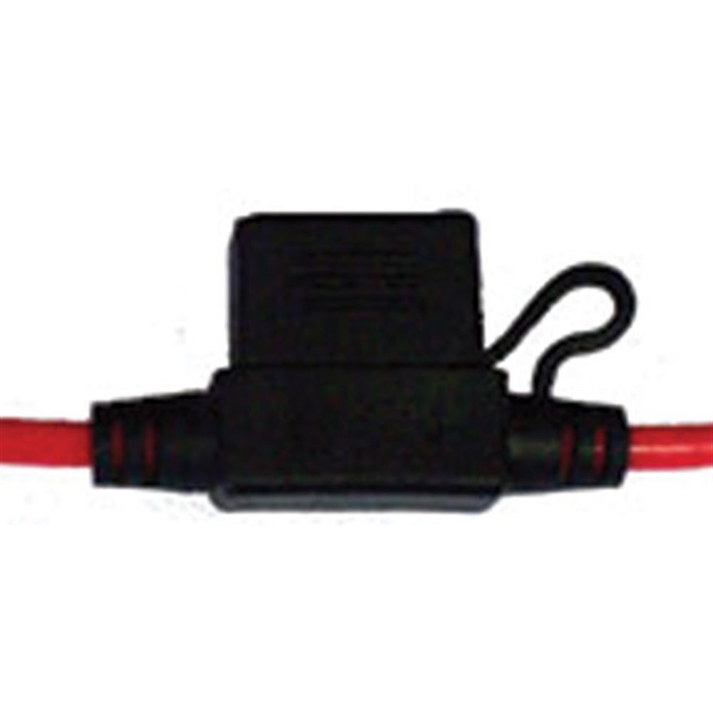 This mini fuse holder comes in-line on a 12 gauge wire. The fuse holder can be spliced into existing wiring or installed as you wire your trailer.