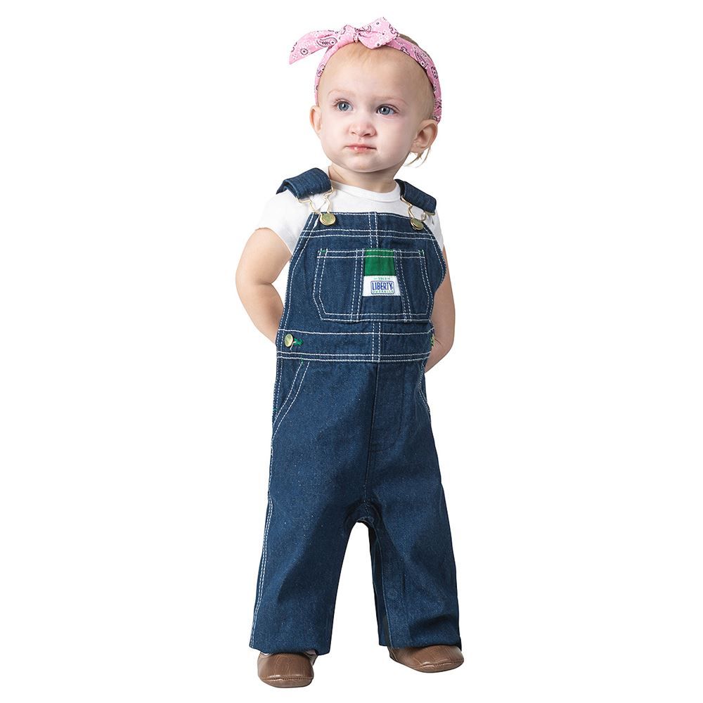 Since 1912 Liberty® has been the brand of overalls for young and old. Adjustable bib straps on these Liberty® denim overalls allow for growth. They are rinsed for softness, durable, and have snap-together leg openings for ease in changing. Double-needle stitching reduces tears. Front and back pockets provide space to store valuable treasures or playthings.