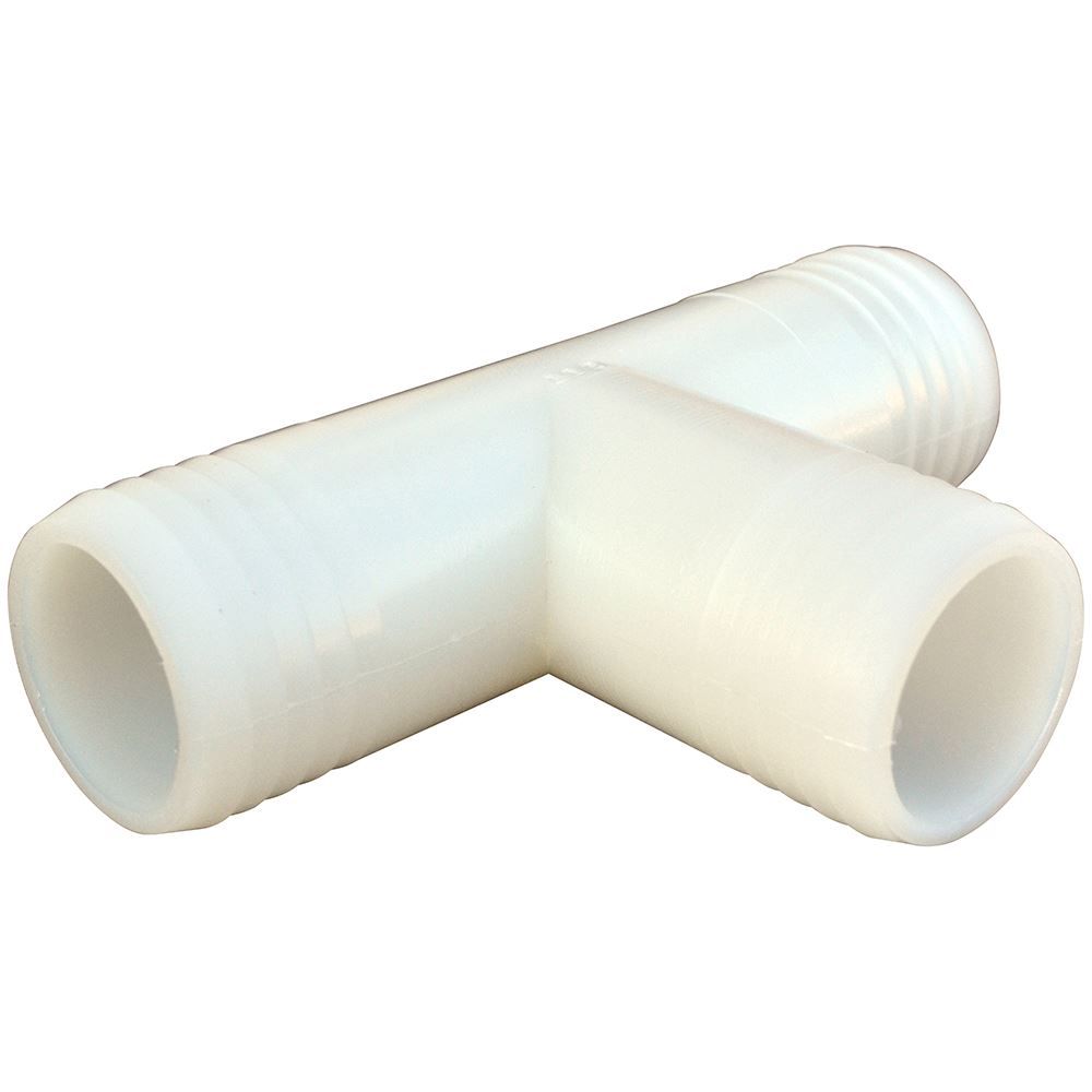 Designed for a wide range of temperatures, nylon® fittings are recommended for structural strength. Used for working pressures up to 150 PSI in moderate temperatures, this hose barb tee has a 3/4 in. hose barb by a 3/4 in. hose barb.