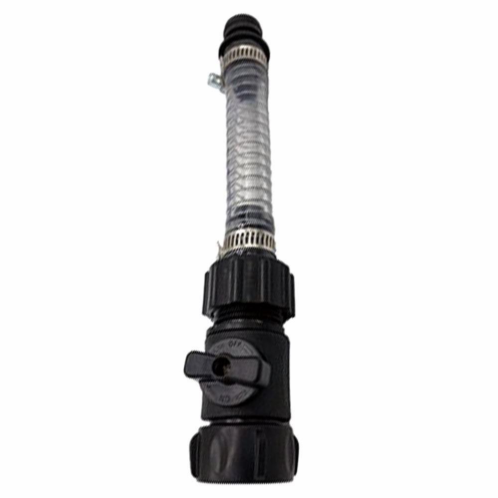 This intake hose assembly with shut-off valve connects the outlet on the tank with the pump to provide the spray solution. It is built to fit FIMCO 15 and 25 Gallon Sprayers with 2.1 and 2.4 GPM Pumps mounted on the side of the tank.