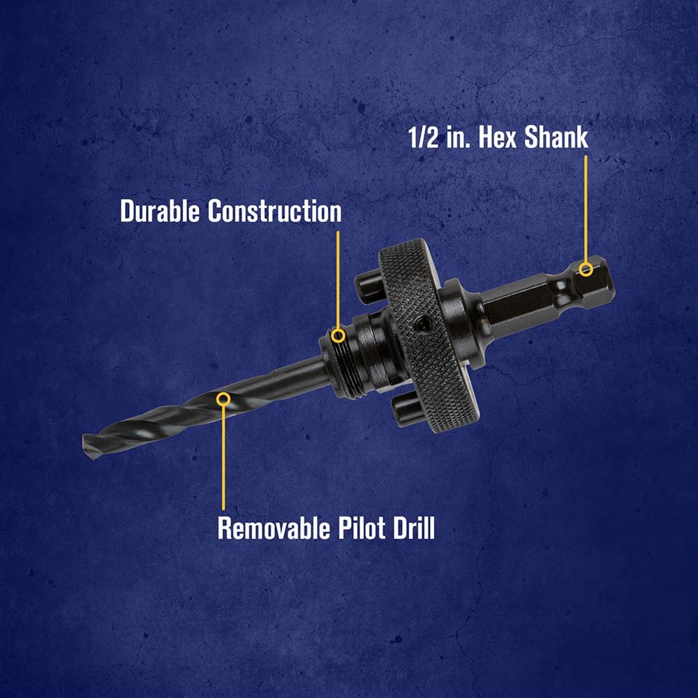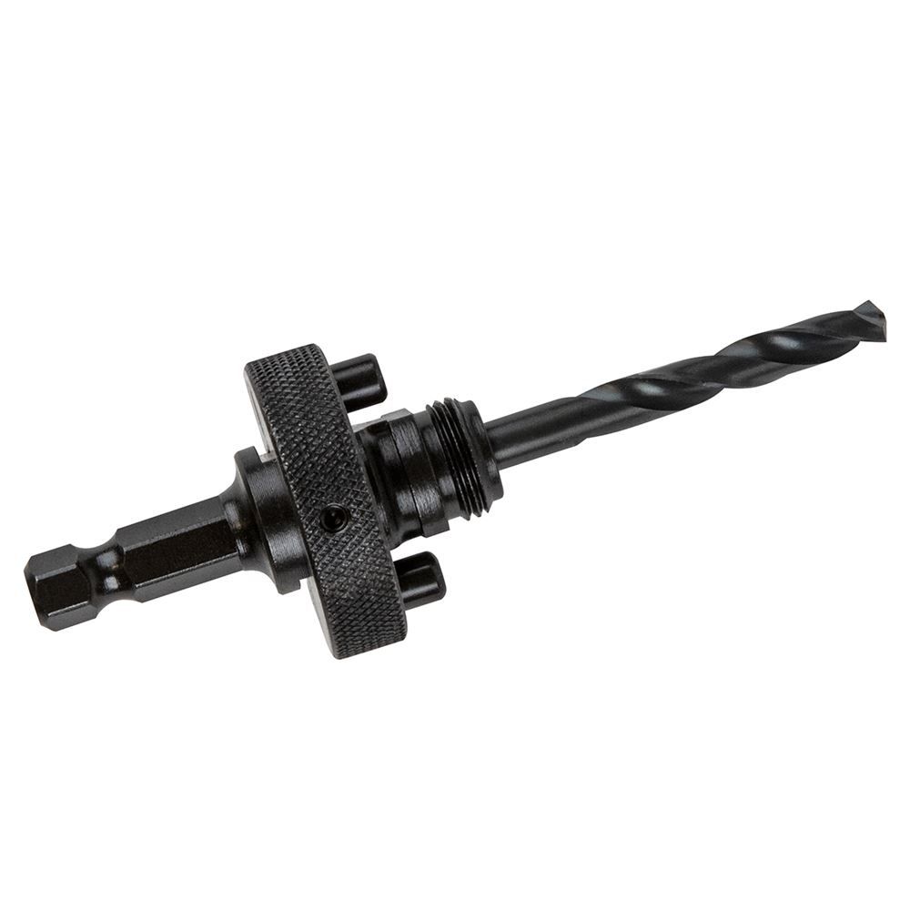 This hole saw arbor has a tough, durable construction with a removable pilot drill for easy replacement.