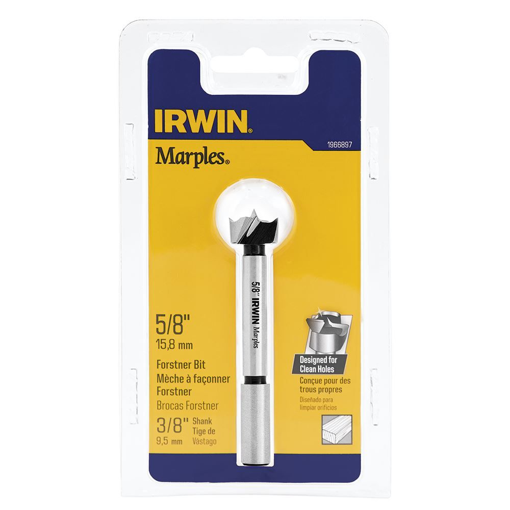 This 5/8" Forstner wood drill bit is designed to drill precise flat bottom holes and pocket holes quickly and easily. It has a reduced shank to fit 3/8" and larger drills and drill presses.