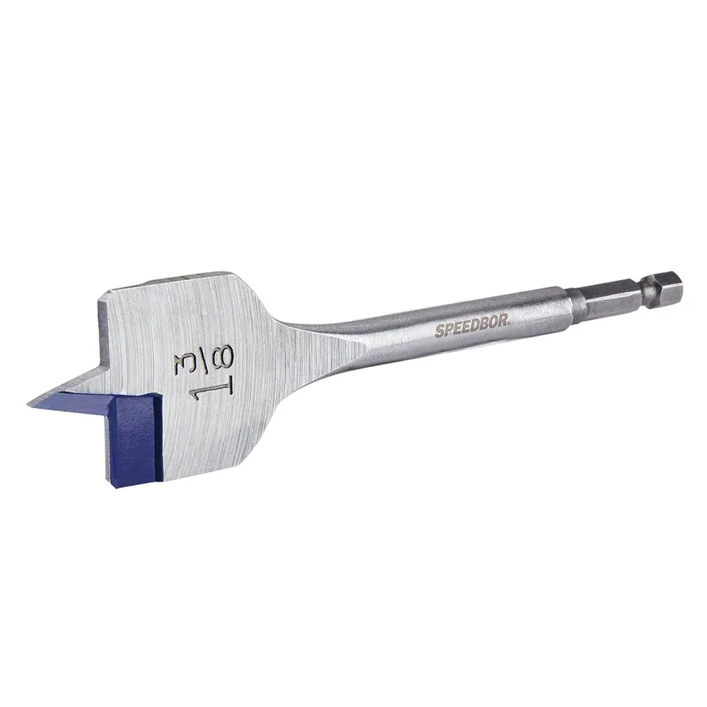This 1 3/8" Irwin® Speedbor® Spade Wood Bit lasts twice as long and cuts twice as fast. It has a patented Blue-Groove Design™ for fast chip removal. It is impact accessible for use with impact drivers.