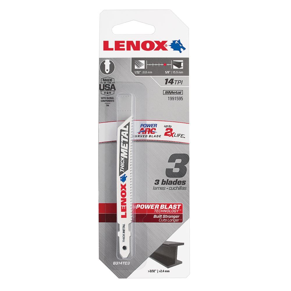 Lenox® 3-5/8" x 14 TPI T-shank Power Arc® Jig Saw Blade 3 Pack