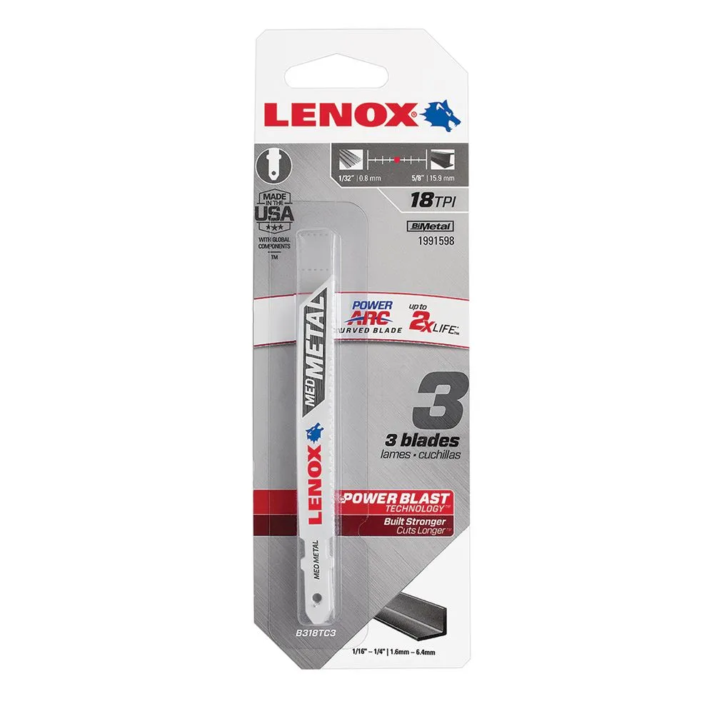 Lenox® 3-5/8" x 18 TPI T-shank Power Arc® Jig Saw Blade 3 Pack