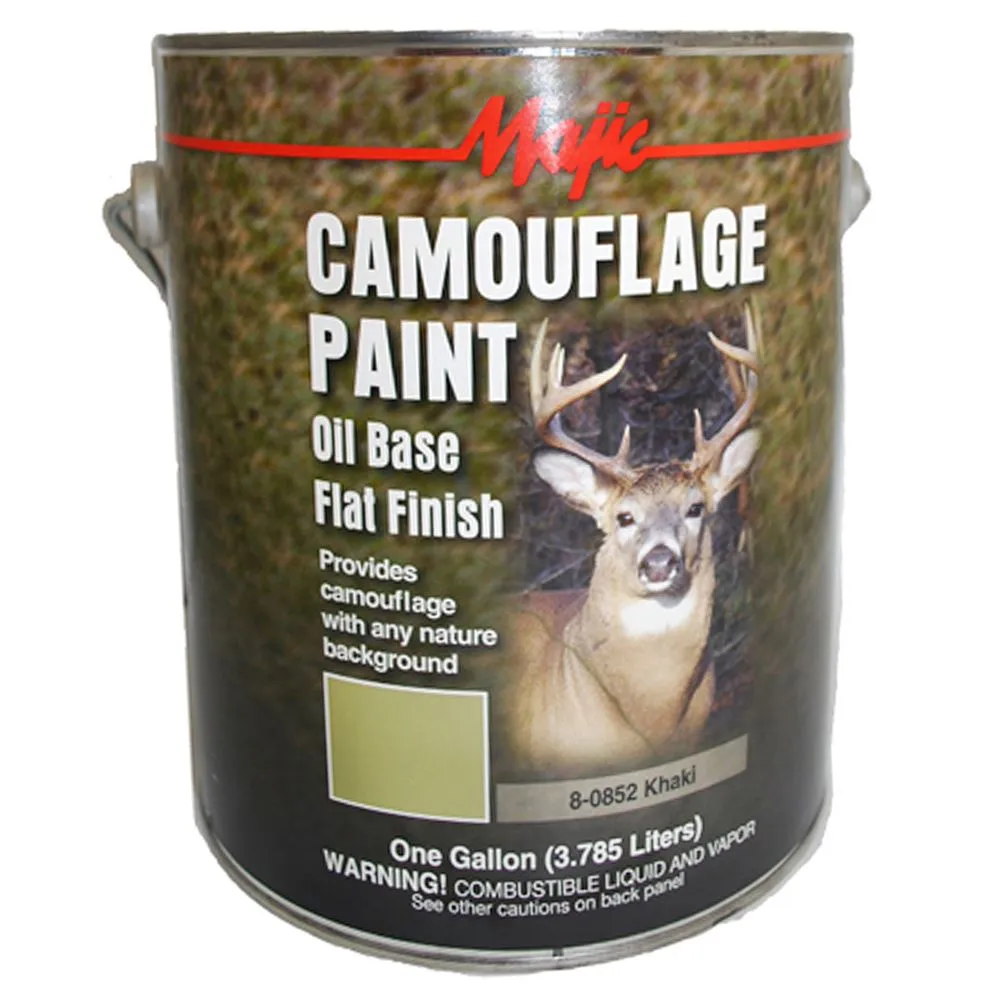 Hide your duck blinds, boats, tree stands, and other hunting equipment with Majic Paints khaki camouflage paint. This khaki paint resists rusting and water.
