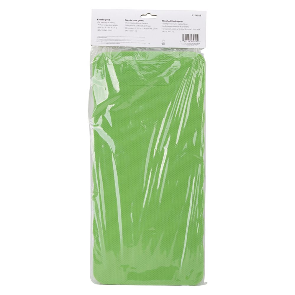 This light green foam cushion provides greater comfort and support for your knees, making gardening more enjoyable. It measures 20 inches W x 1 inch D x 10 inches H.