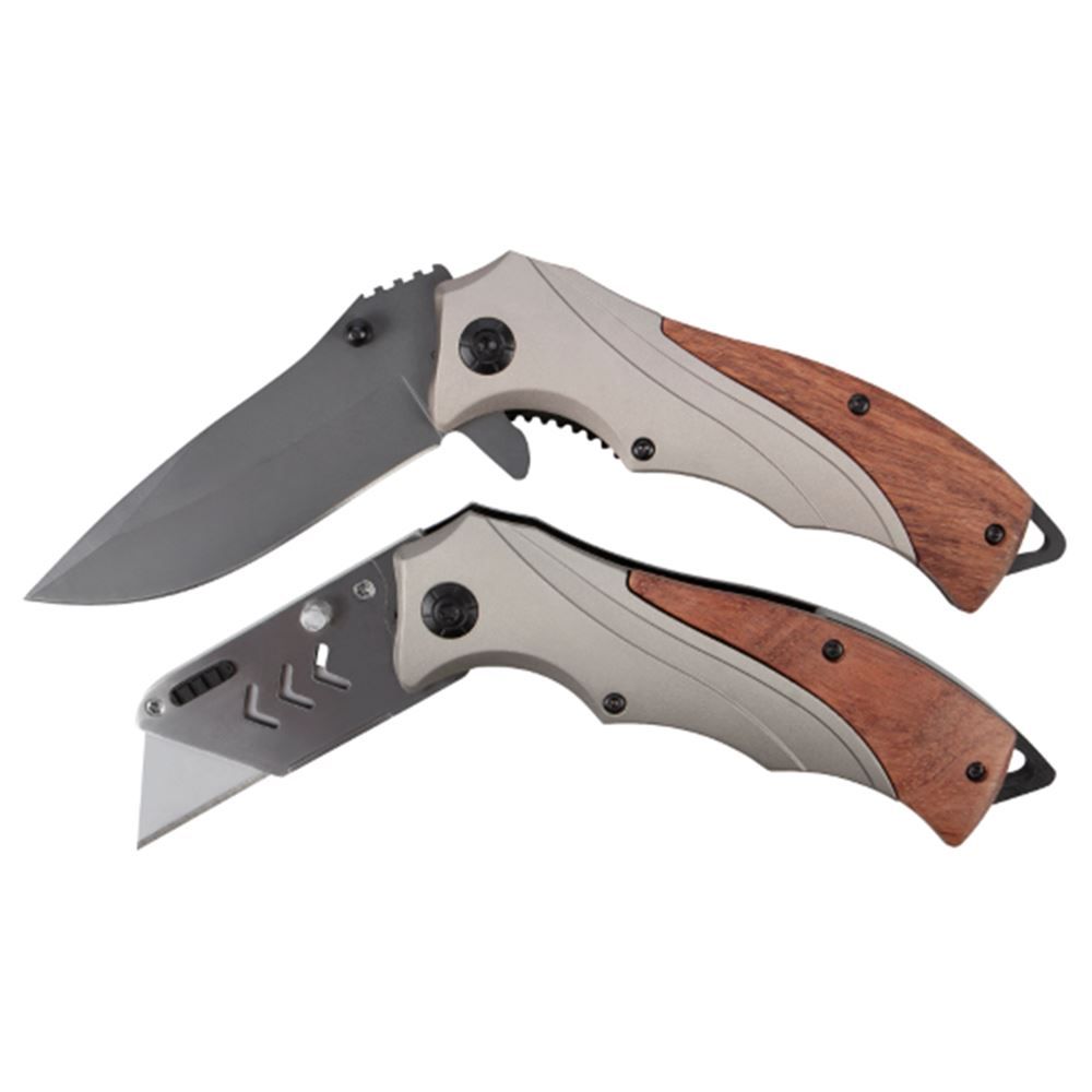 This knife set provides you with stylish matching pocket knife and utility knife.