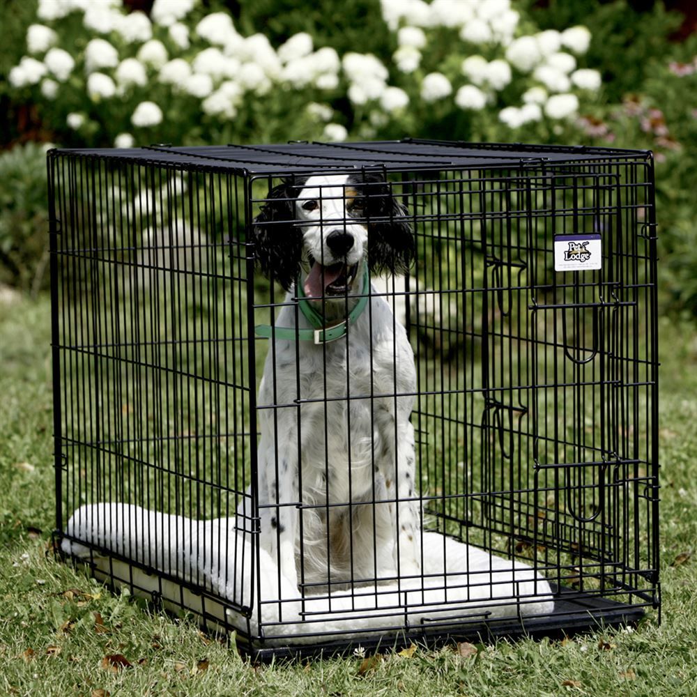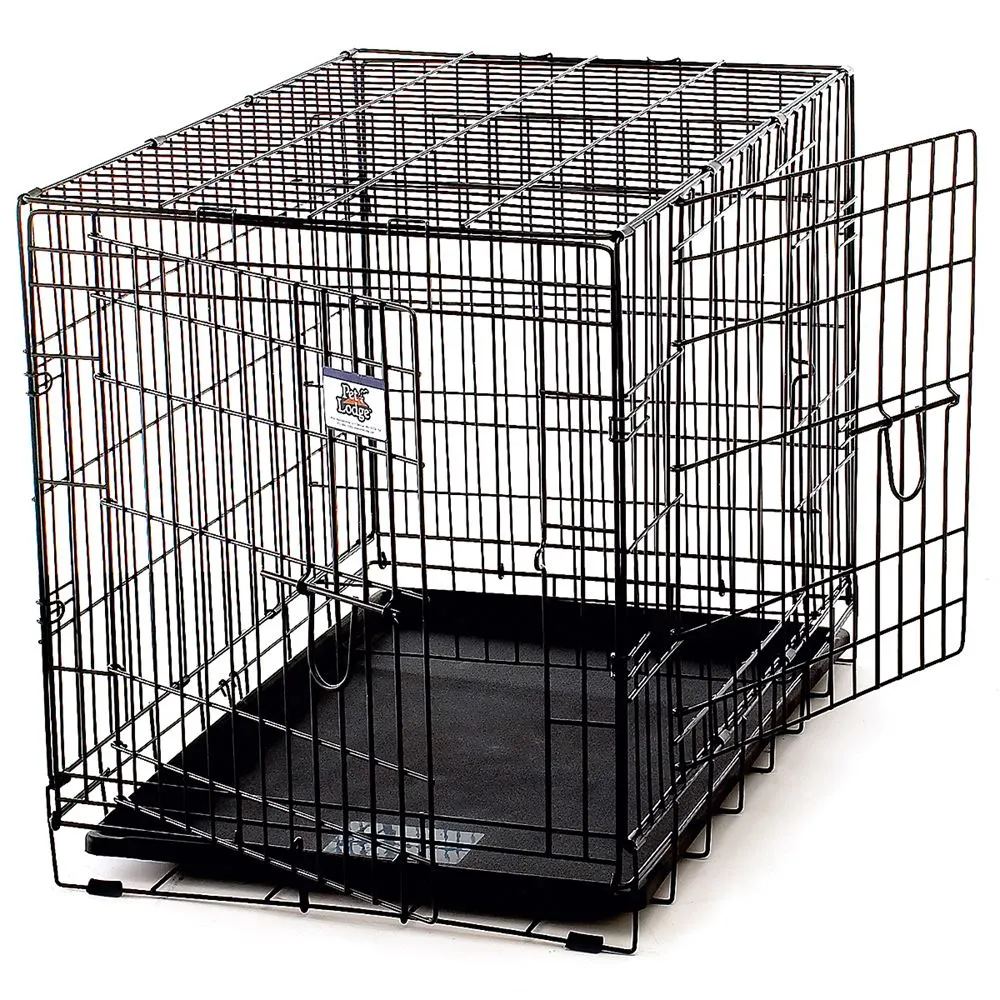 This double door large pet crate sets up easily with no tools required and can fold for storage. The double door feature is designed to adapt to your pet's needs either though the front or side.