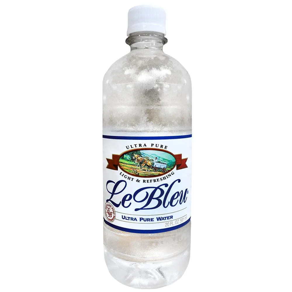 Buy Le Bleu bottles of water for a clean and pure taste. This delicious water is purified using a five-step process that removes chemicals and inorganic minerals. For added safety, Le Bleu is oxygenated to destroy any unwanted elements, so your beverage will always be clean.Carry a Le Bleu 20 oz. bottle with you on the job site, at the office, or in the field to stay hydrated. They're also great for sporting events and parties. You can trust that Le Bleu is lead free, chlorine free, and sodium free. It's even officially Kosher certified.