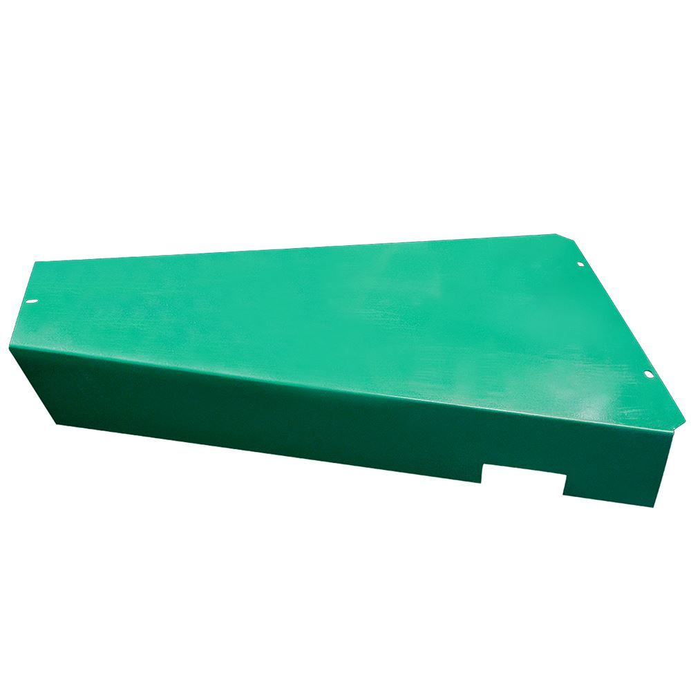 This is the left side pulley cover that is made to fit an Agmate 8' rear discharge finishing mower. This left hand pulley cover is made of steel and measures 36-1/2" wide on the outside edge and 19-1/2" wide on the gearbox side and the height is 5-1/2".