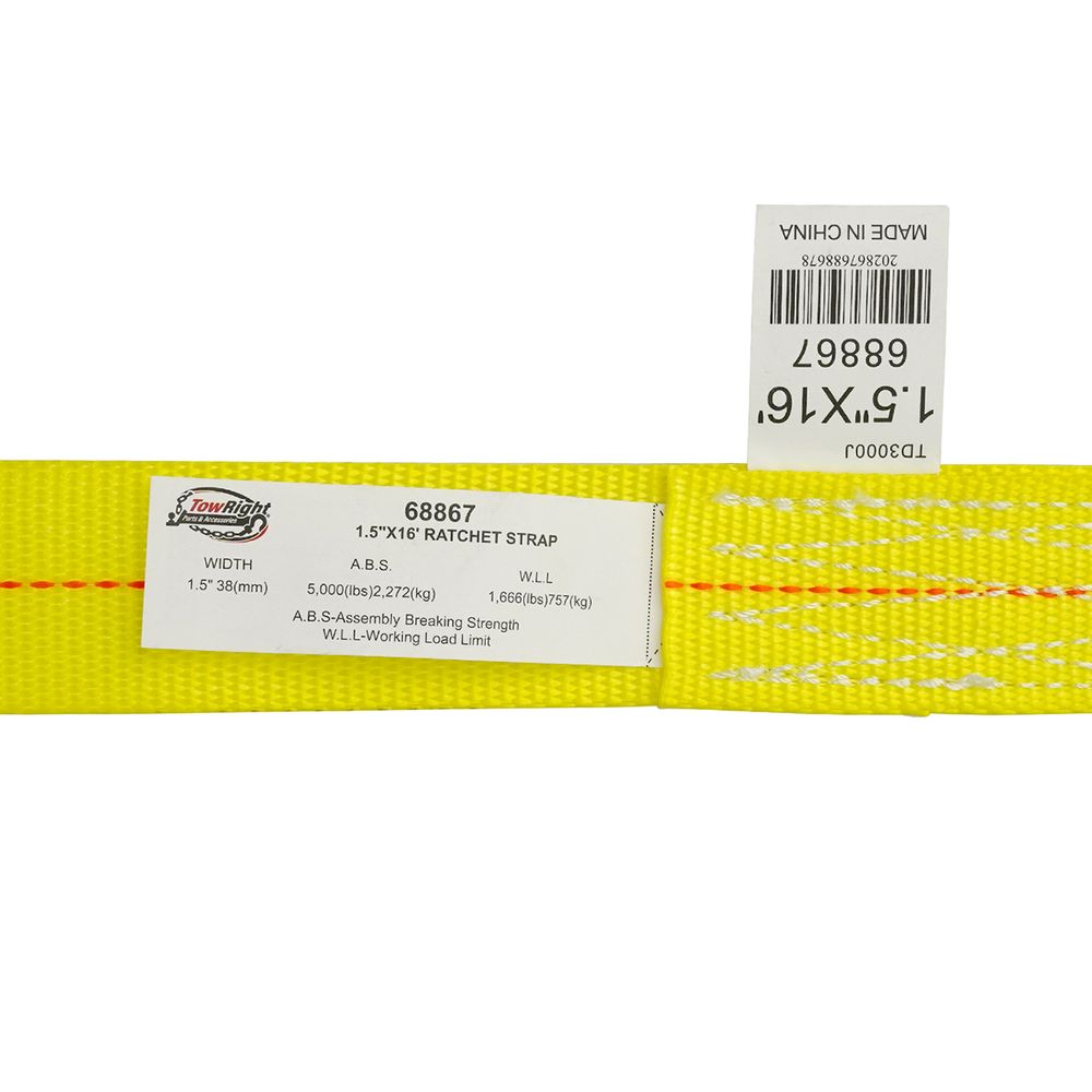 16' X 1-1/2" Yellow Web Ratchet Strap