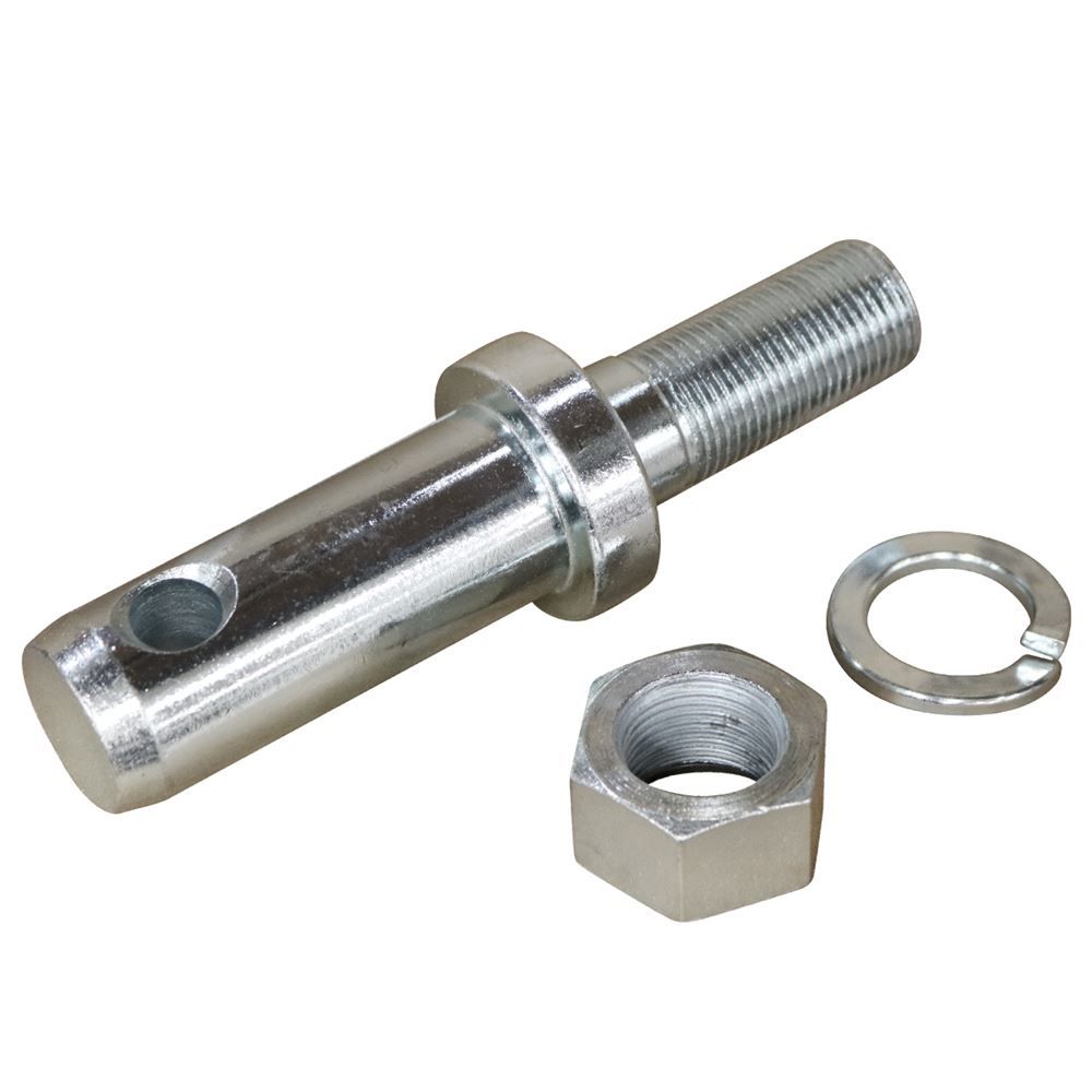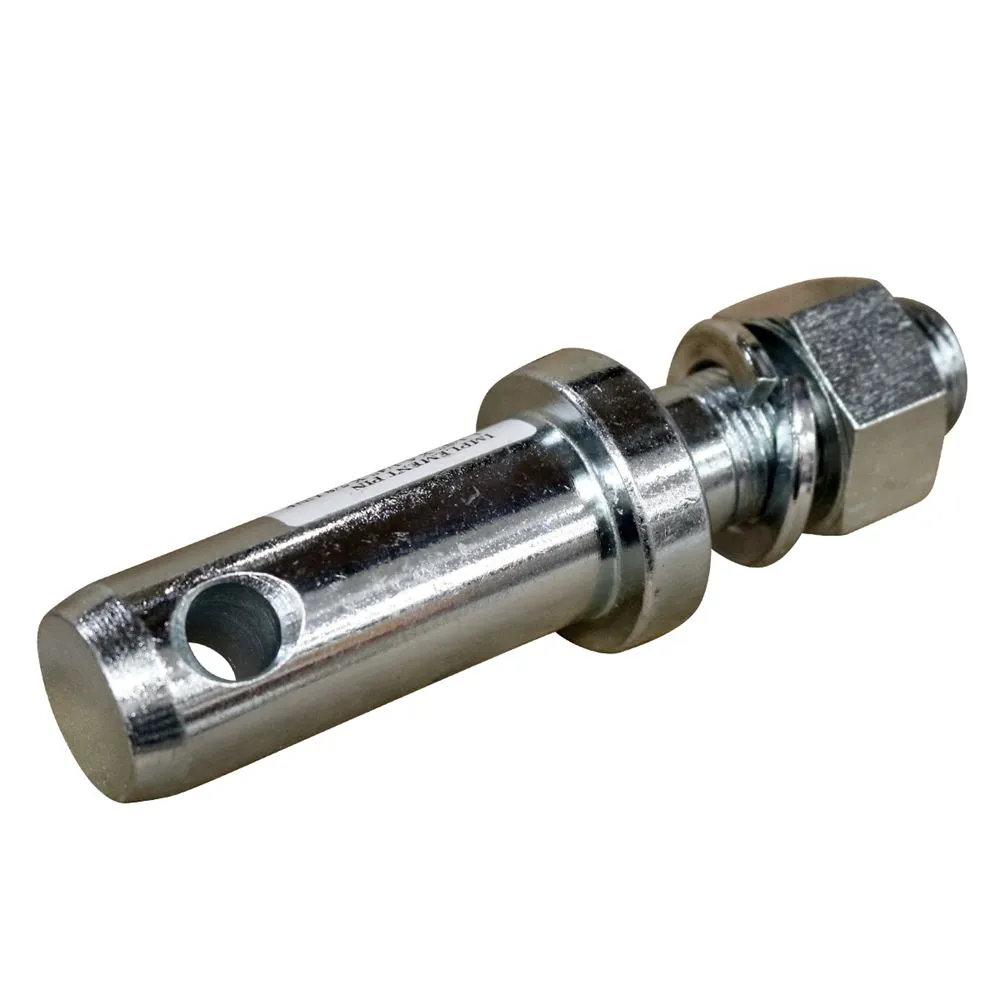 This is a replacement lift arm pin that is adjustable and converts a category 1 to a 2. This lift arm pin has an usable length 1-13/16" and the overall length is 5-3/8". This lift arm pin is made from a mild steel with a trivalent white finish.