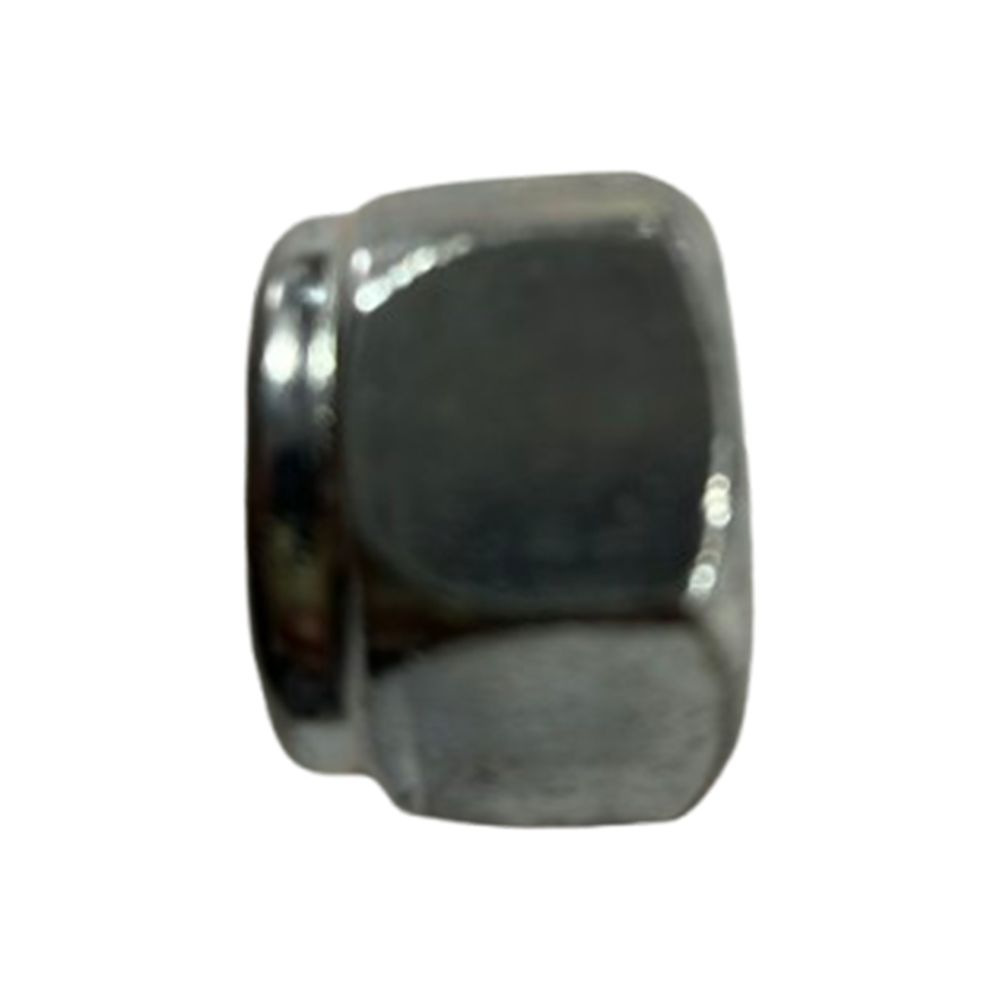 This locknut is 1 inch in diameter, has 8 threads per inch, and has a nylon insert that prevents the nut from loosening due to vibration or movement.