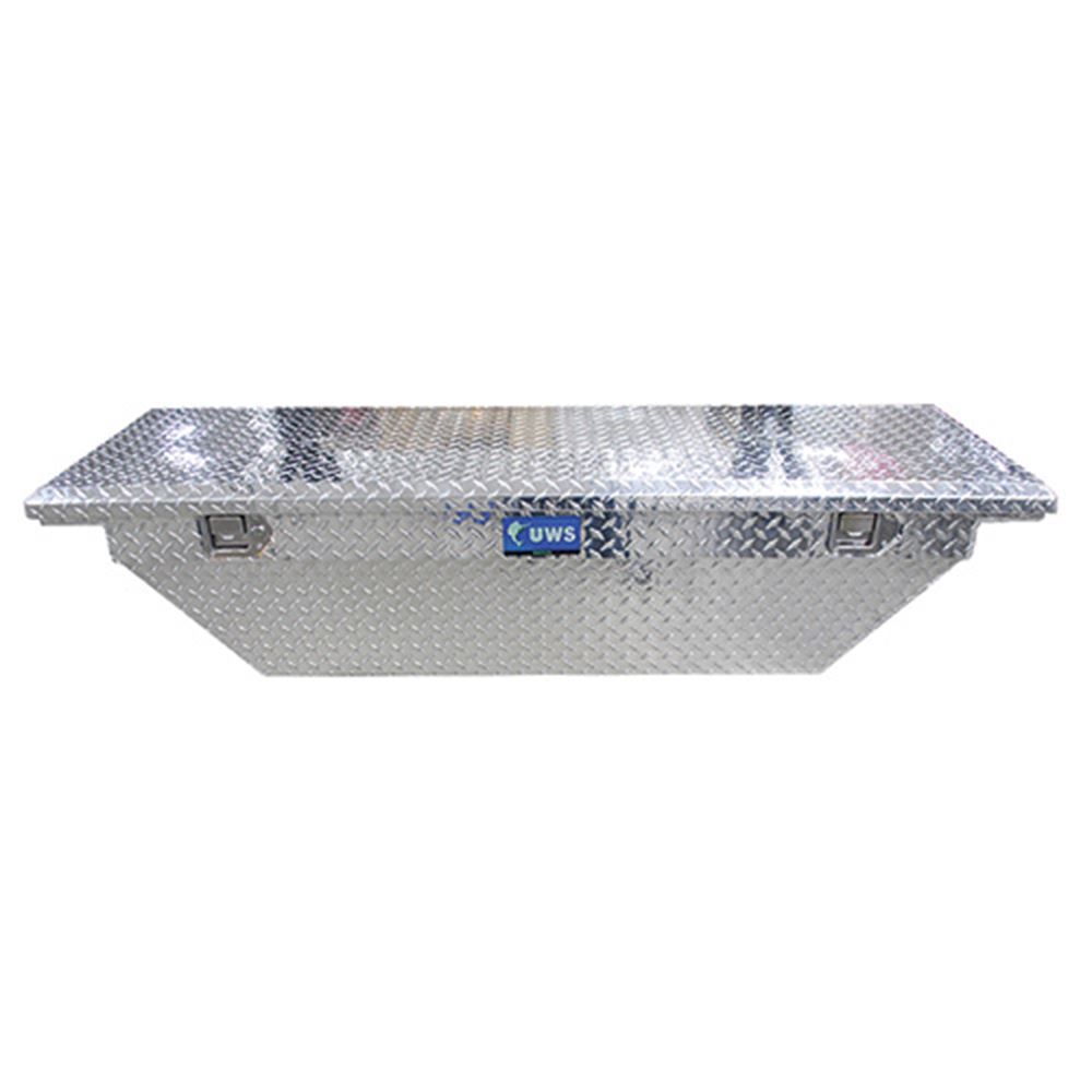 The UWS TBS-63-A-LP is a 63 in. long, single lid angled crossover toolbox. Opening to a full 90 ° , the fully foamed lid can be easily loaded with large and bulky items. A connecting rod enclosure within the lid helps prevent contents of the toolbox from jamming the locking system. A stainless steel lock provides a rust-free strength and security, while the lid is lined with a MicroSeal stripping to seal out the elements. This angled crossover toolbox is made 2 in. shorter than regular crossover toolboxes, allowing for a better rear window view. It is made with .063 in. diamond tread aluminum, designed to support heavy items and preventing leakage. This toolbox also comes with a 3-compartment sliding tray for convenient item storage and making tools immediately accessible and 2 built-in tool trays. Its dimensions are 63 in. long by 11-3/4 in. deep by 13-1/2 in. high.