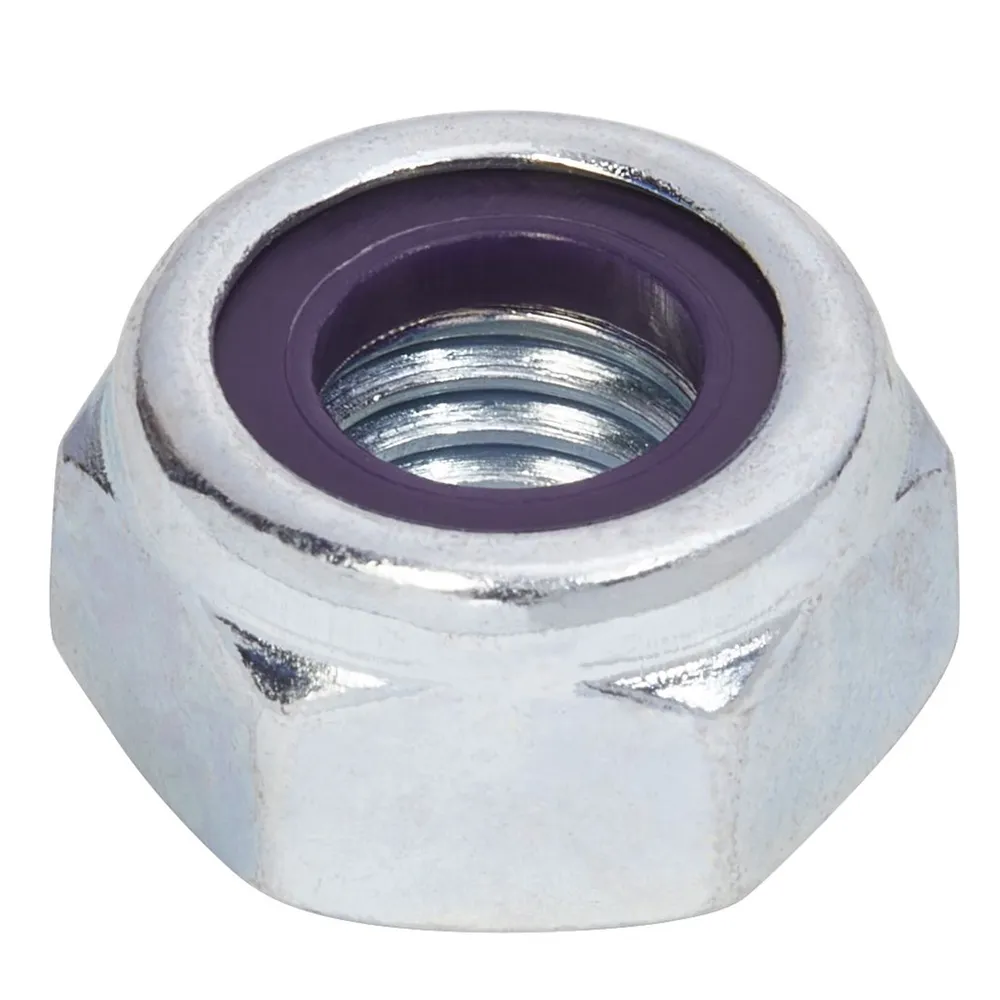 This M24-3 nylon insert locknut helps to prevent loosening due to vibration or movement. It is a metric nut with a 24mm diameter and a 3mm thread pitch. The nylon insert creates a tight grip on the bolt's threads, increasing friction and preventing the nut from backing off.