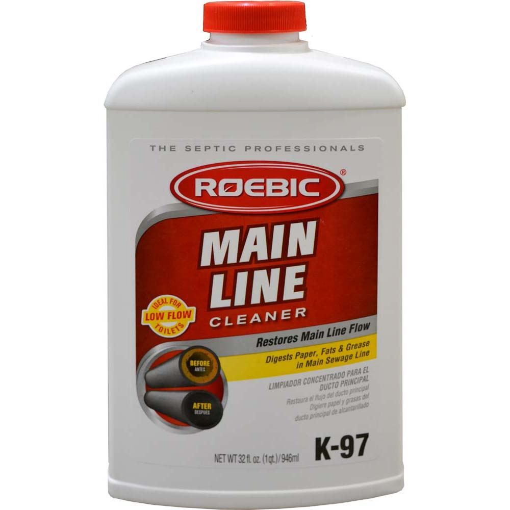 - K-97 Main Line Cleaner is ideal for the undersized septic tank that is currently "OVERWORKED"; K-97 Main Line Cleaner used weekly will assure a constant level of active waste degrading bacteria for maximum bacterial action under severe conditions.