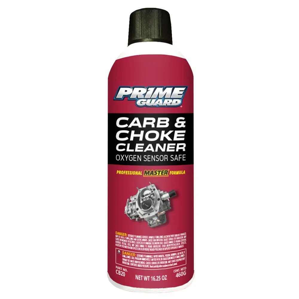 Aerosol spray Prime Guard® Master Carb Cleaner, 16.25-ounce can. Will not harm fuel injectors, oxygen sensors, or catalytic converters.
