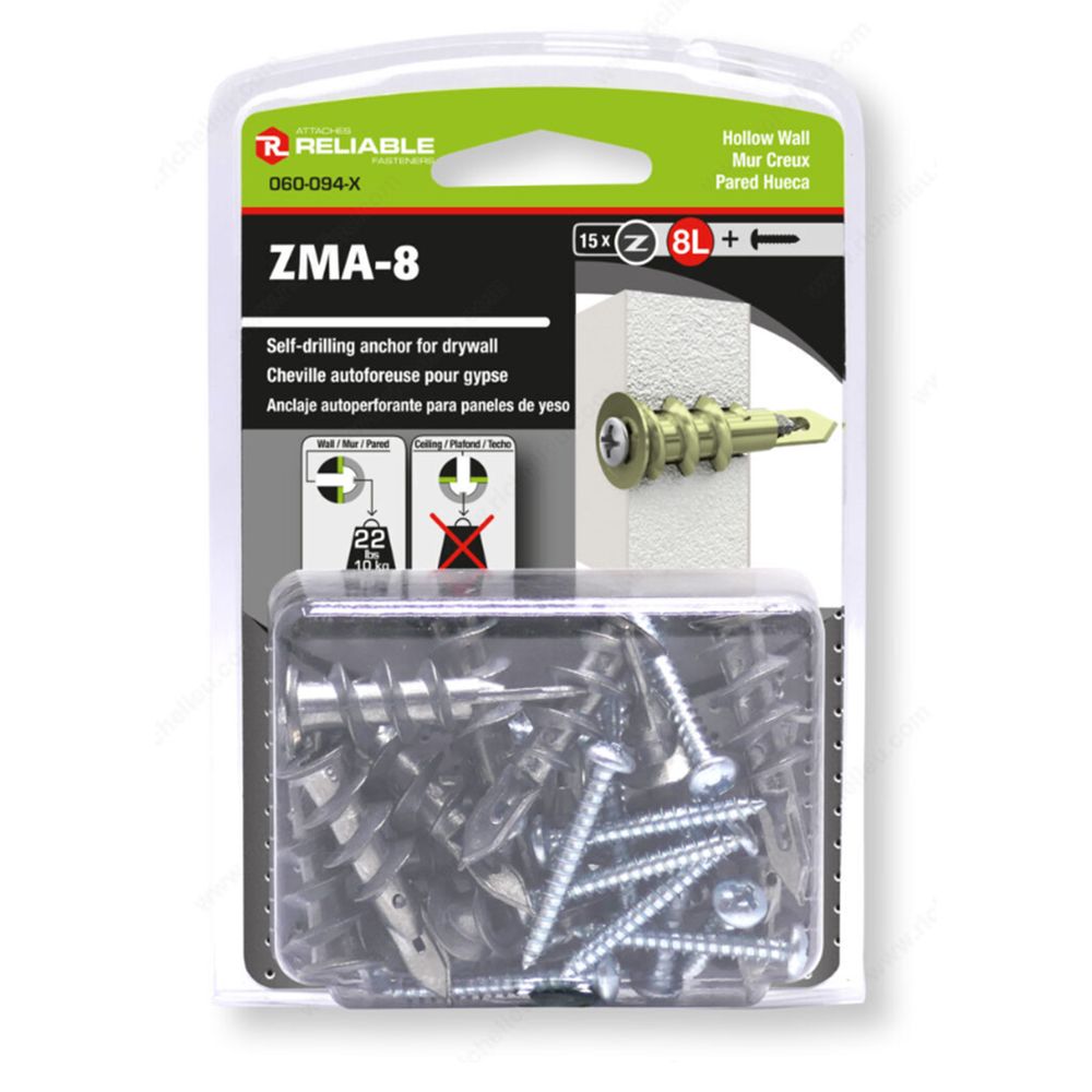 This metal self-drilling anchor with a metal screw is used to secure objects to walls and ceilings made of drywall or other hollow materials.
