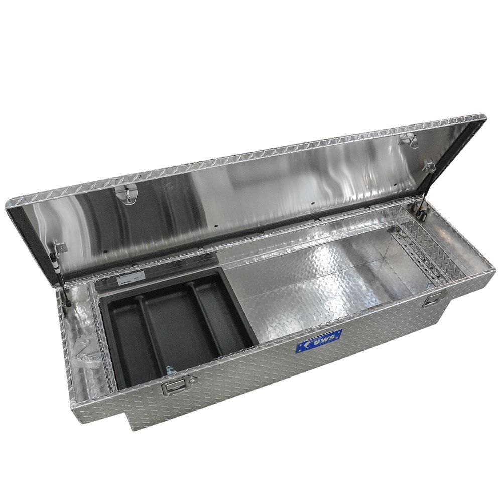 The crossover, single lid toolbox (model TBS-63) by UWS can hold a variety of tools for any job. With a mid-size capacity and one-piece aluminum tub, it has a fully foamed lid that can be raised to 90° for easier loading. Also includes 2 built-in tool trays and a 3-compartment small items tray.