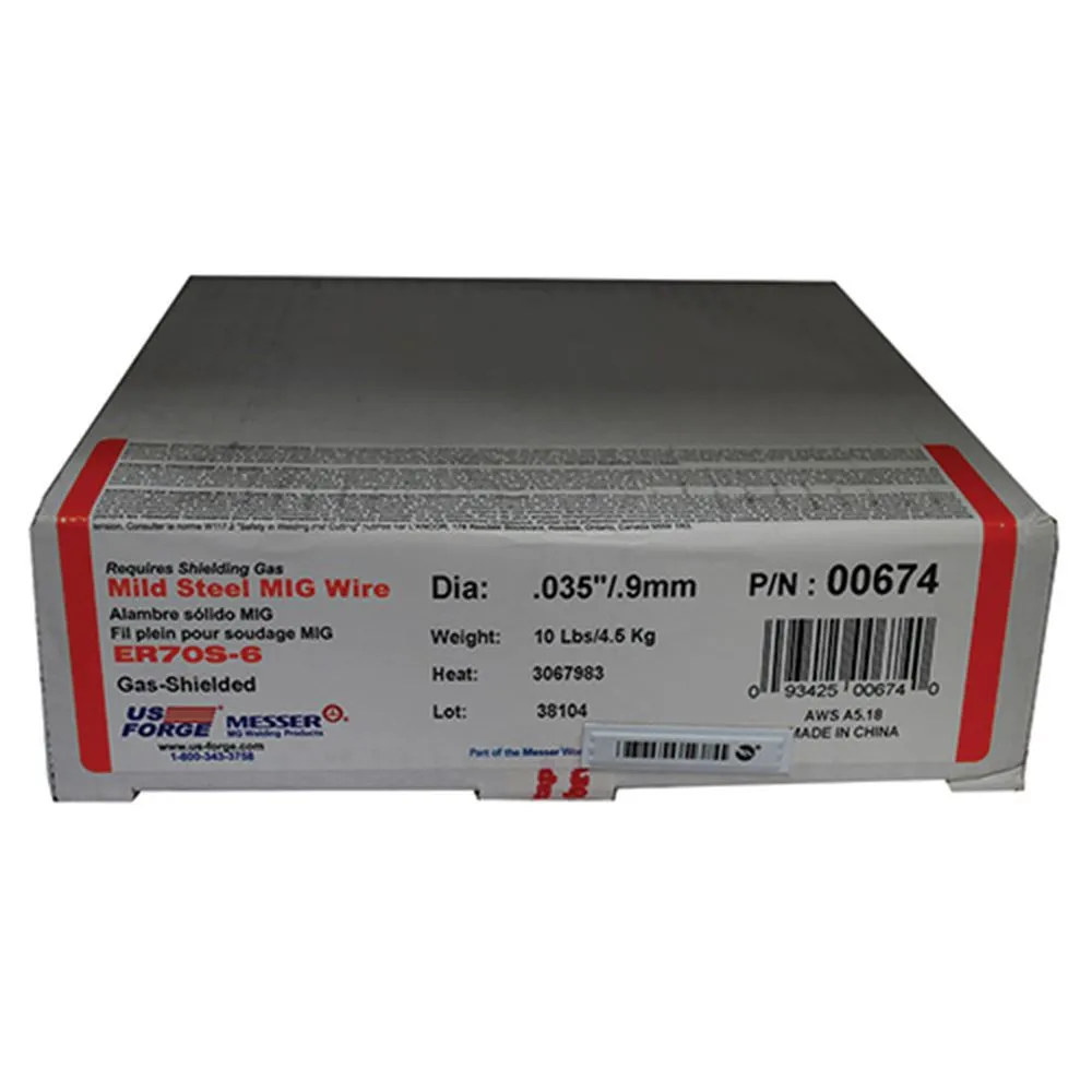 The US Forge 00674 Solid Mild Steel MIG wire, at .035 diameter comes on a 10 pound spool. This welding wire is ideal for repair and fabrication of sheet metal and lightweight structural steel welding.