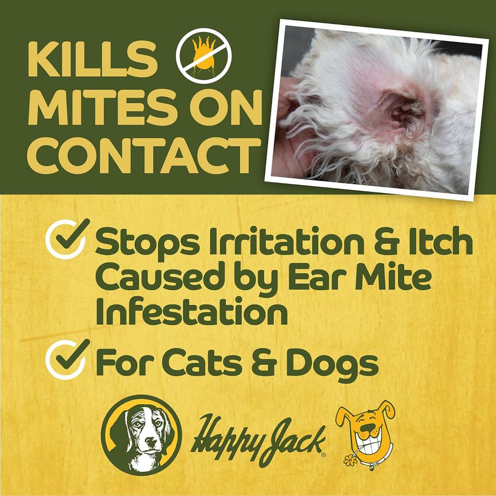 Mitex 1 Oz. For Dogs & Cats - Although microscopic in size, ear mites are often a major problem for dogs and cats. They cause intense itching inside the ear, irritation and infection if not treated. Symptoms: Dogs with ear mites often scratch at their ears and shake their heads to one side or the other. For this problem we recommend Happy Jack Mitex, an effective pesticide in handy self-applicator bottle. Contains Pyrethrins.