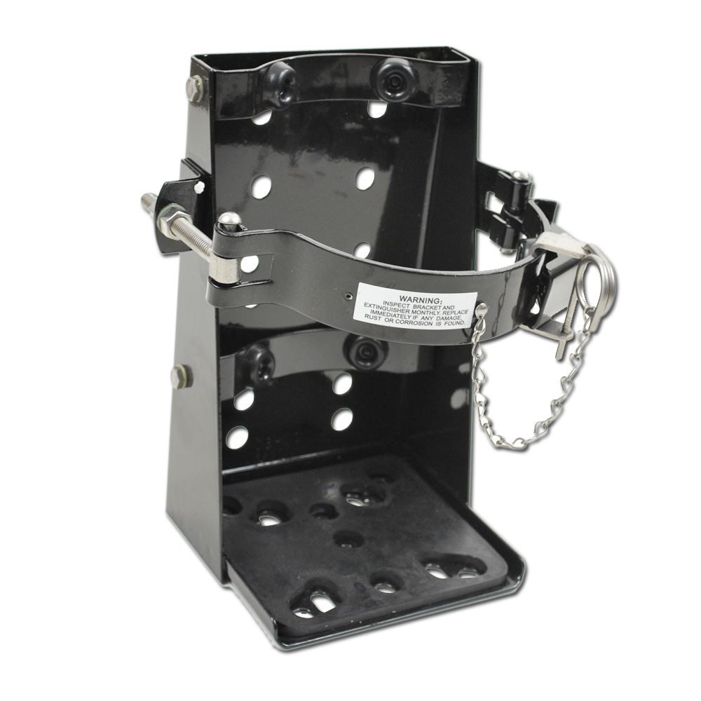 Designed specifically for Kidde Proline fire extinguishers. Secure, Multi-Point, right-angle mounting plate. Contoured cradle with gate-clamp extinguisher band. Durable, attractive, gloss-finished metal.