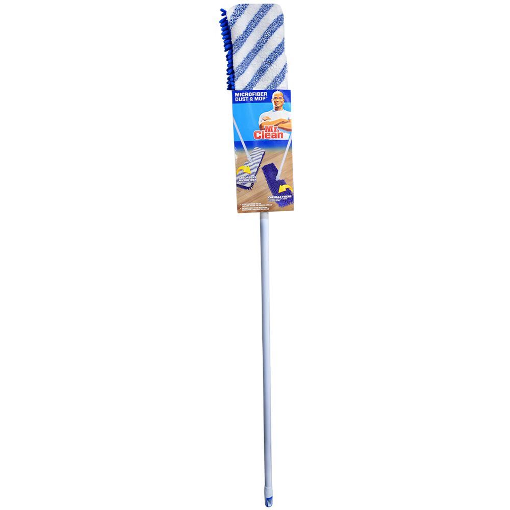 With a pivoting mop head, this Mr. Clean Dust and Mop can be used wet or dry and picks up dust, pet hair, and debris.