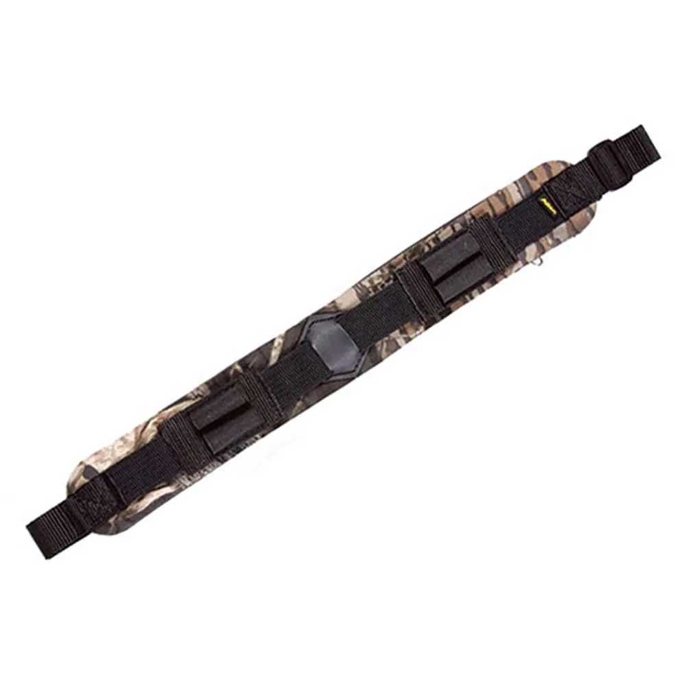 This shotgun sling, created by the Allen Company™, is lined with a comfortable padding for long days in the forest. Sewn with a Mossy Oak® Break-Up camo pattern, four elastic loops are added to hold shotgun shells, a thin flashlight, or monocular. A neoprene lining keeps the strap on your shoulder throughout a hunting venture, no matter if you are walking in a field or through brush. This strap will fit with most 1 in. swivels.