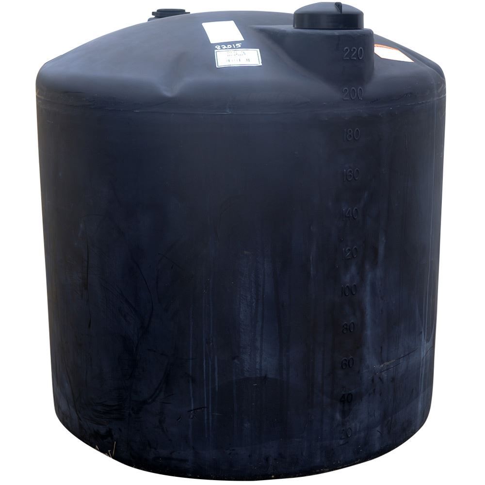 Standing 44 in. high and holding up to 220 gallons, this black Norwesco water tank is rated at 8 lbs. per gallon, making it for water storage use only. It has an offset fill opening for easy filling without back splash.