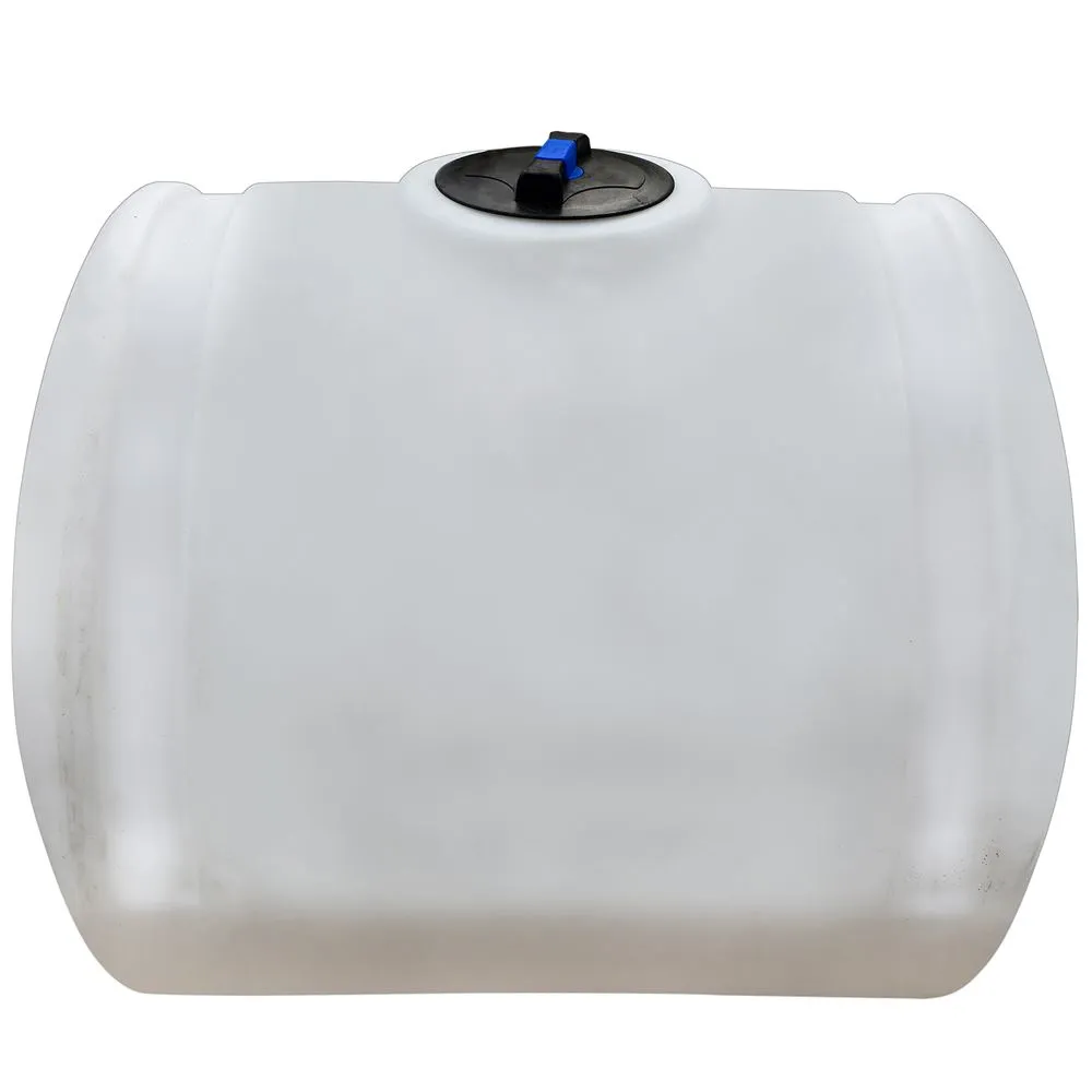 With built-in gallon markers, you will always know the current capacity of your tank's contents with just a glance. This Norwesco horizontal tank measures 25 in. high, 36 in. long, and 32 in. diameter. The 8 in. fill opening is designed for quick and easy filling. With a threaded lid designed to fit directly into the fill opening, this applicator tank is made to minimize sloshing or leaking. Made with resins that meet FDA specifications, this tank is safe for storing potable water. This tank should not be used with petroleum based products.