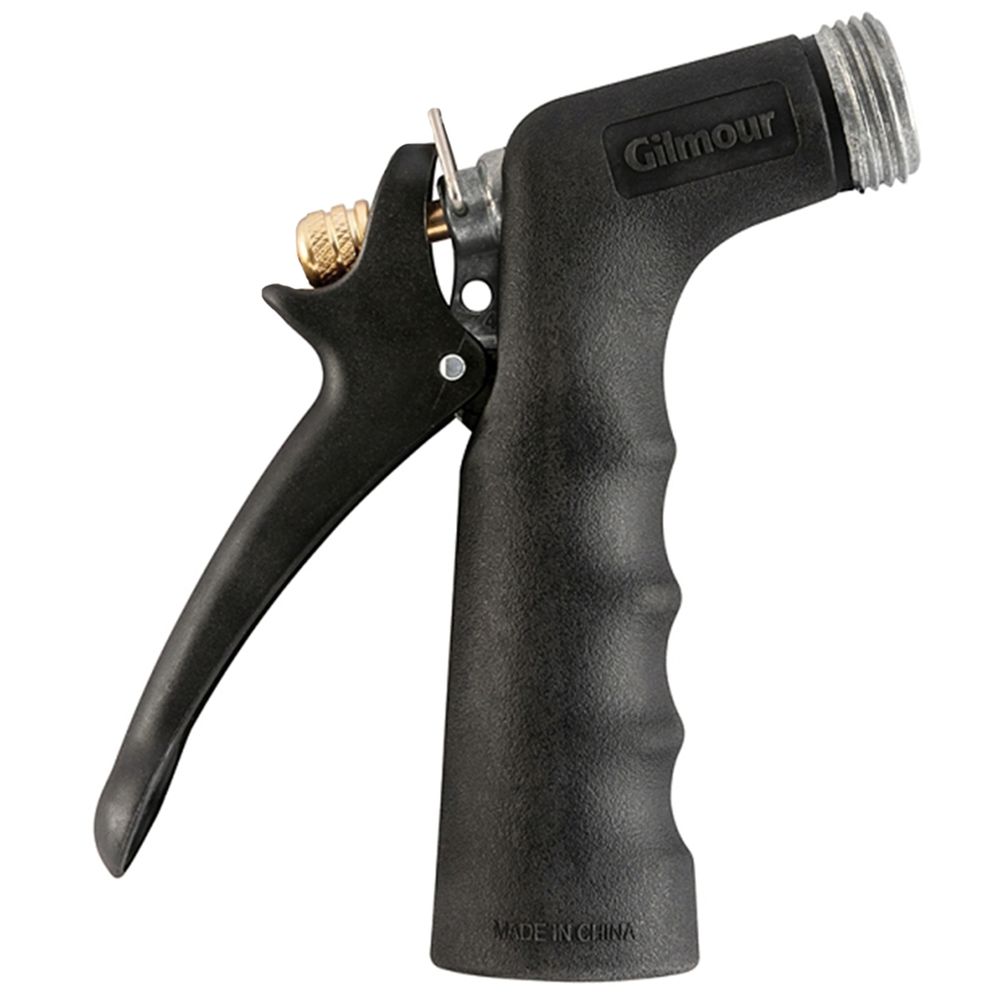 Gilmour Watering Nozzle, GHT Connection, 2.5 to 5 gpm, 60 psi, Aluminum/Stainless Steel, Black, Pistol Grip Handle, Dimensions: 5-1/2 in L.