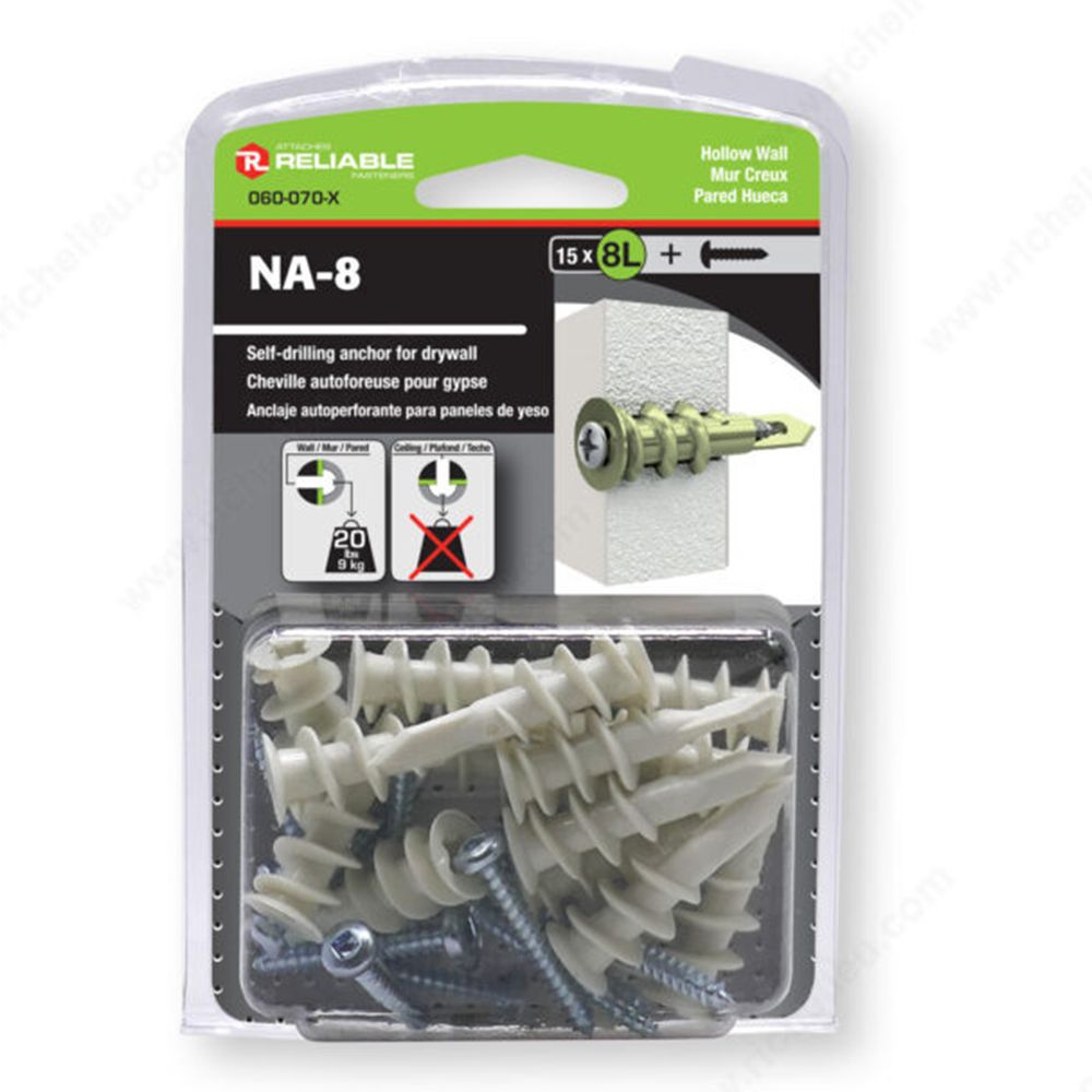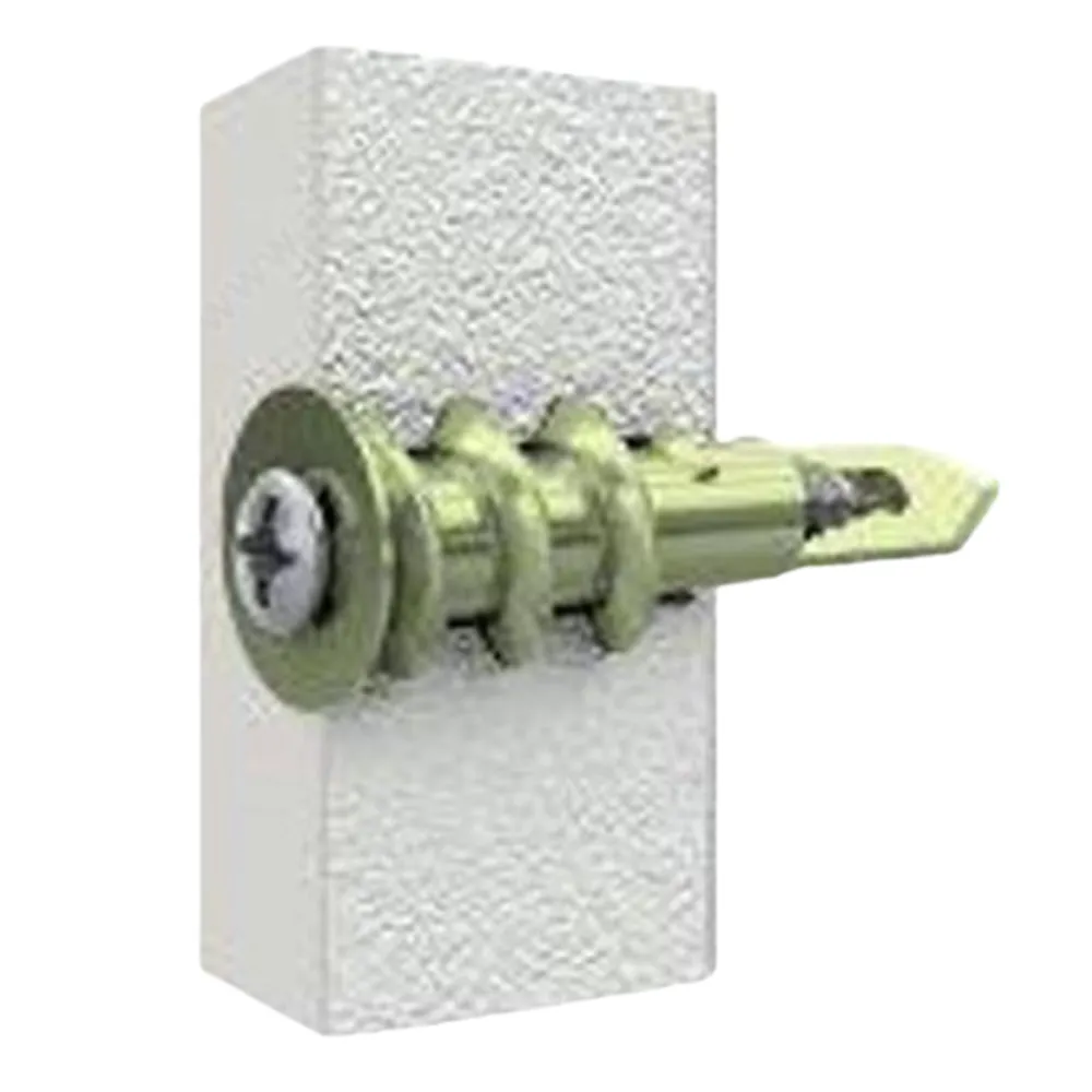 This nylon self-drilling anchor with a metal screw is used to secure objects to walls and ceilings made of drywall or other hollow materials.