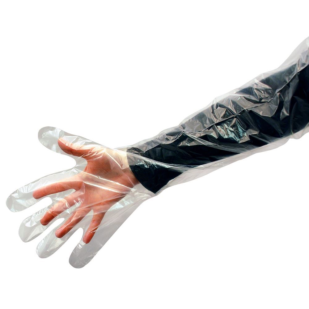 These 39" clear standard OB gloves are made from high-quality polyethylene fiber and are shoulder-length.