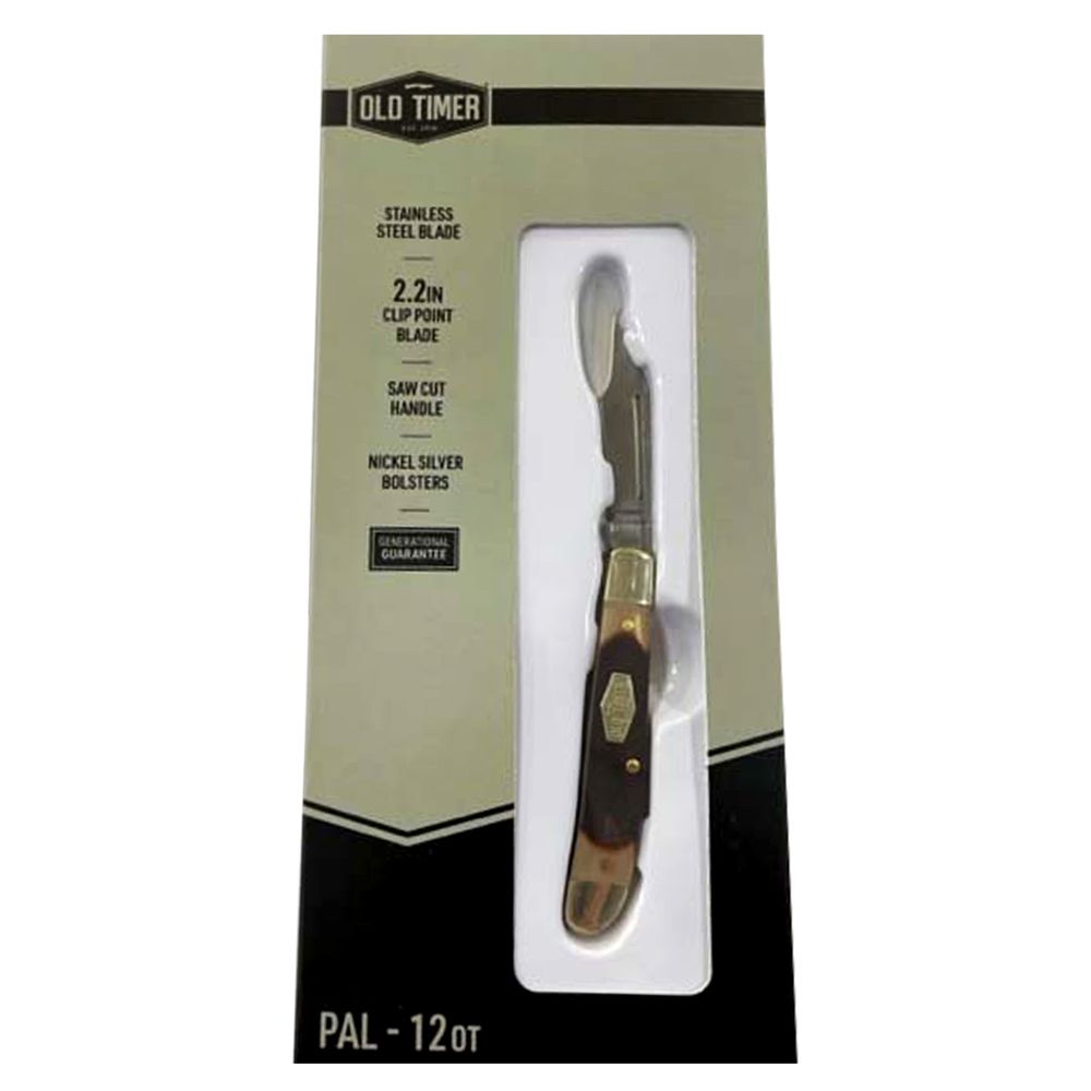 Made of high carbon steel this Old Timmer Pal Folded Pocket Knife is a compact pocketknife and offers a 7Cr17 high carbon stainless steel clip point blade with nail pull.